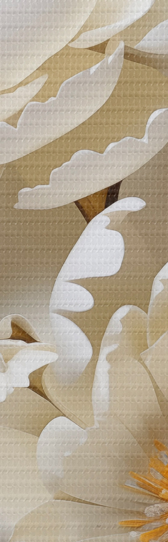 carta da parati Grandi peonie bianche con foglie gialle su uno sfondo grigio nr. m30327