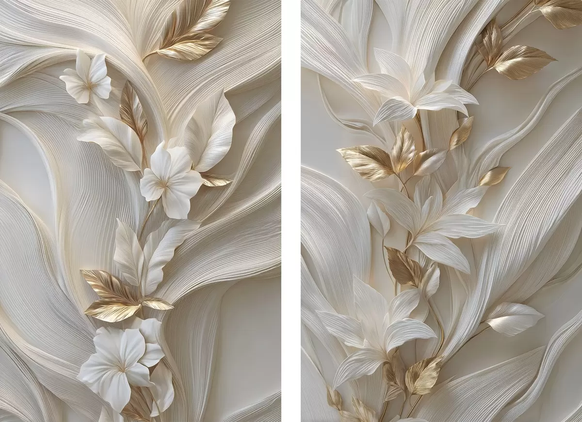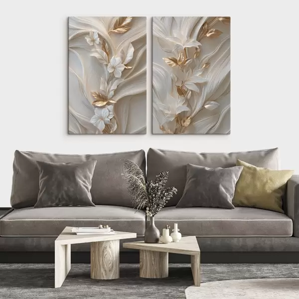 Quadri una raffinata riproduzione di foglie, trame e fiori tridimensionali Nr m30334
