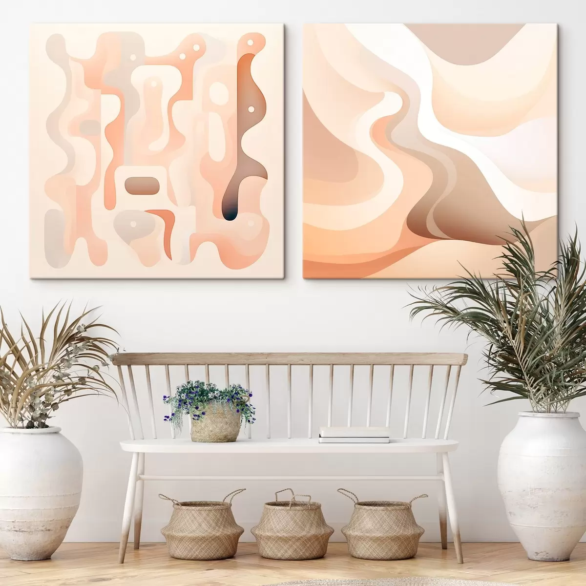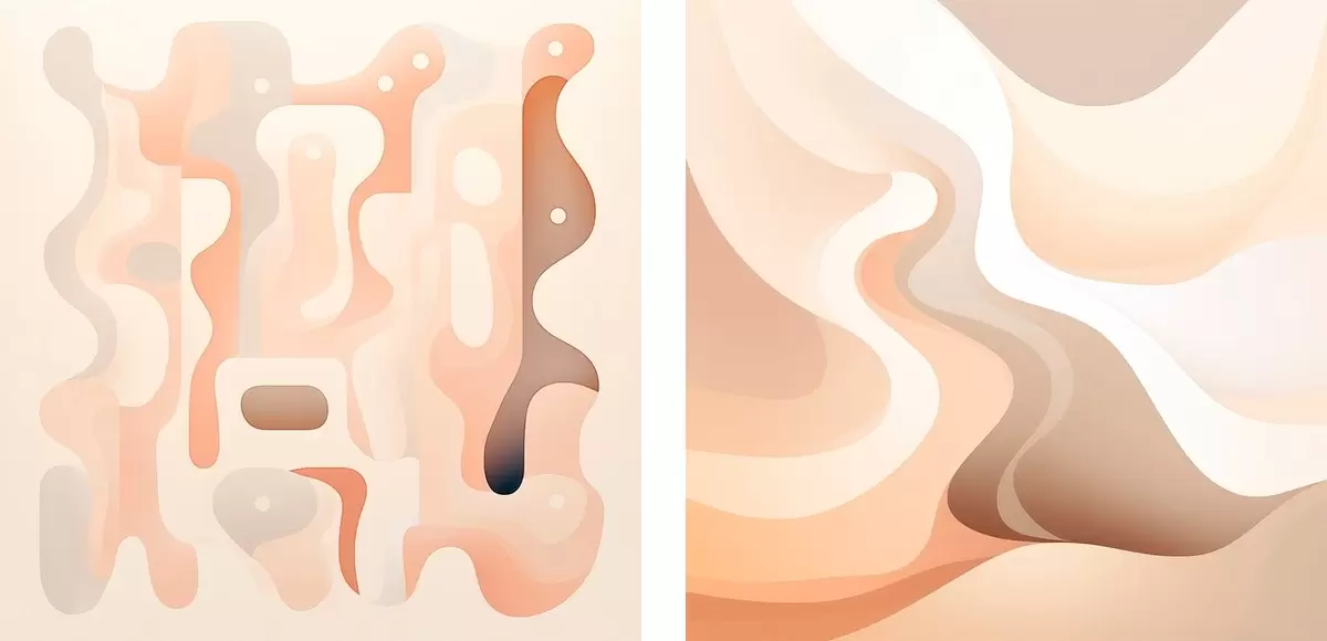Quadri Composizione astratta caratterizzata da linee fluide e forme volumetriche in una palette di colori beige-marroni Nr m30349