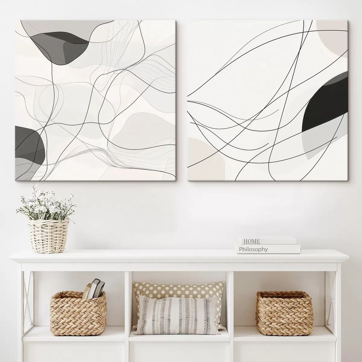 Quadri Estetica grafica: curve astratte su uno sfondo chiaro in stile minimalista Nr m30353