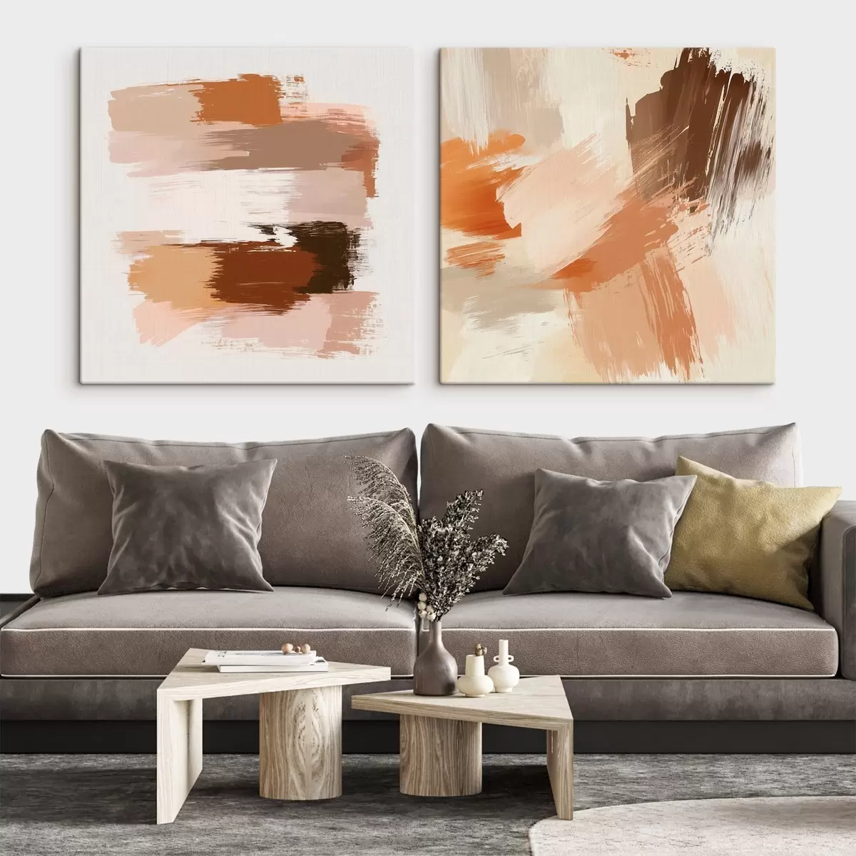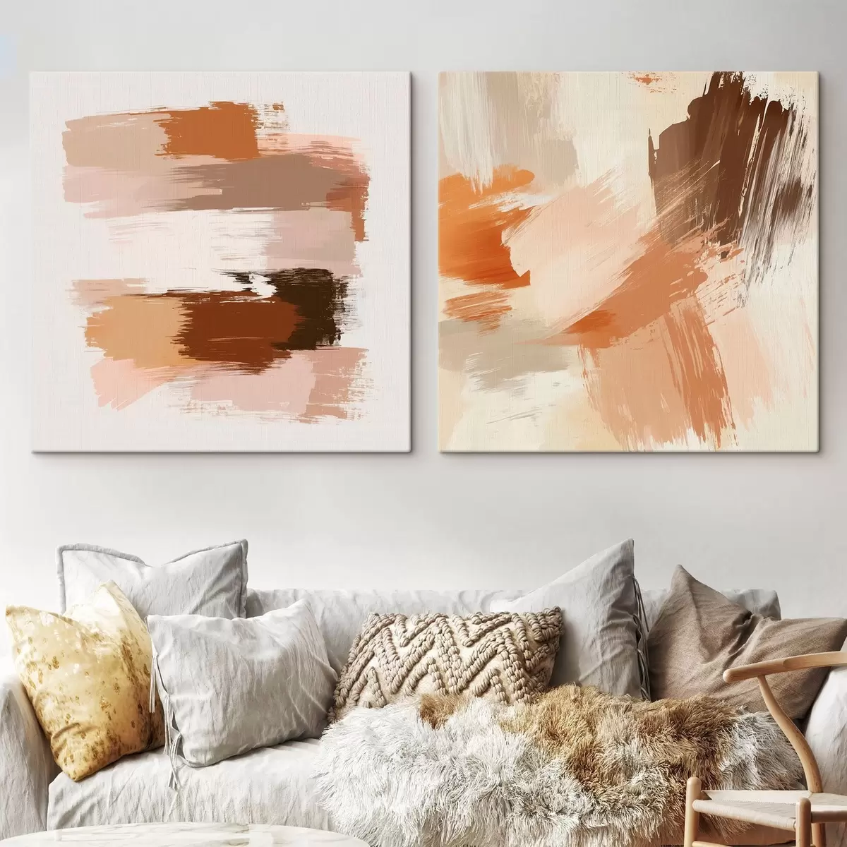 Quadri Arte decorativa dai caldi toni del marrone-beige con un effetto pittorico a pennellate Nr m30355