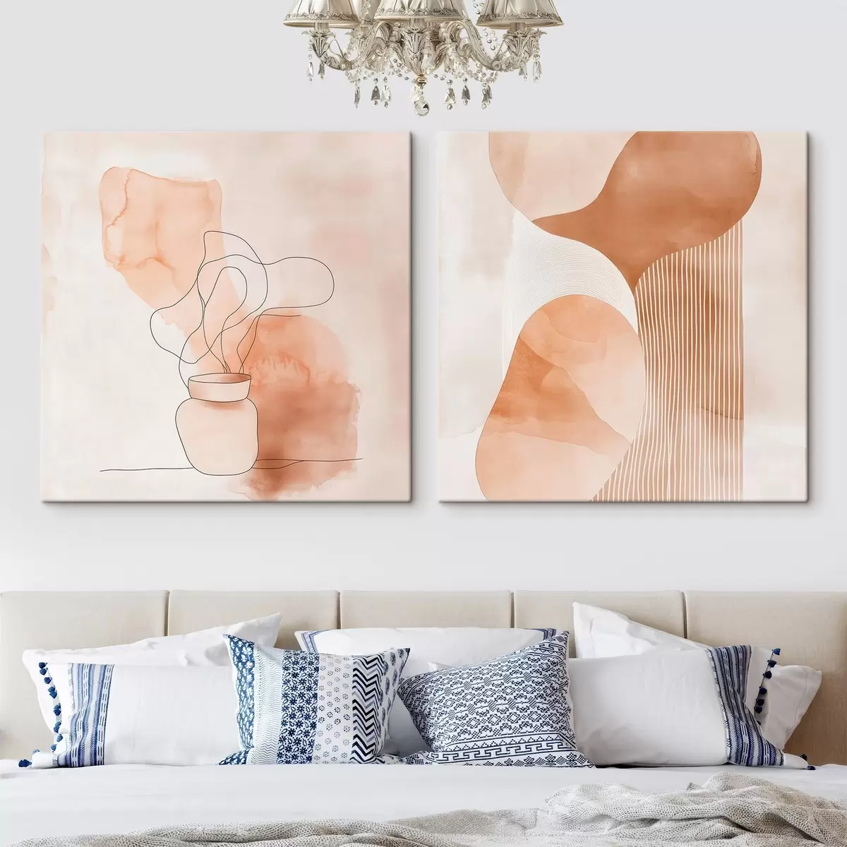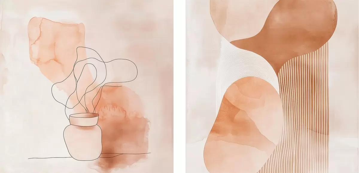 Quadri Forme astratte in una palette di colori beige-pesca con accenti lineari in stile minimalista Nr m30361