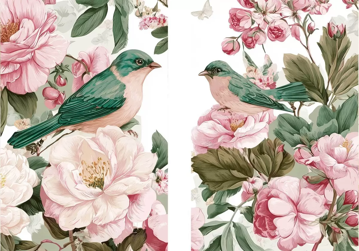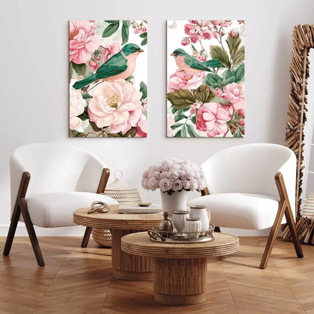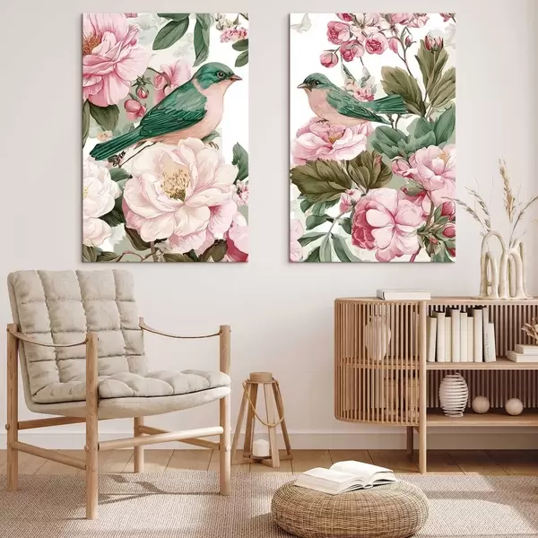 Quadri Uccelli su delicati fiori rosa Nr m30386