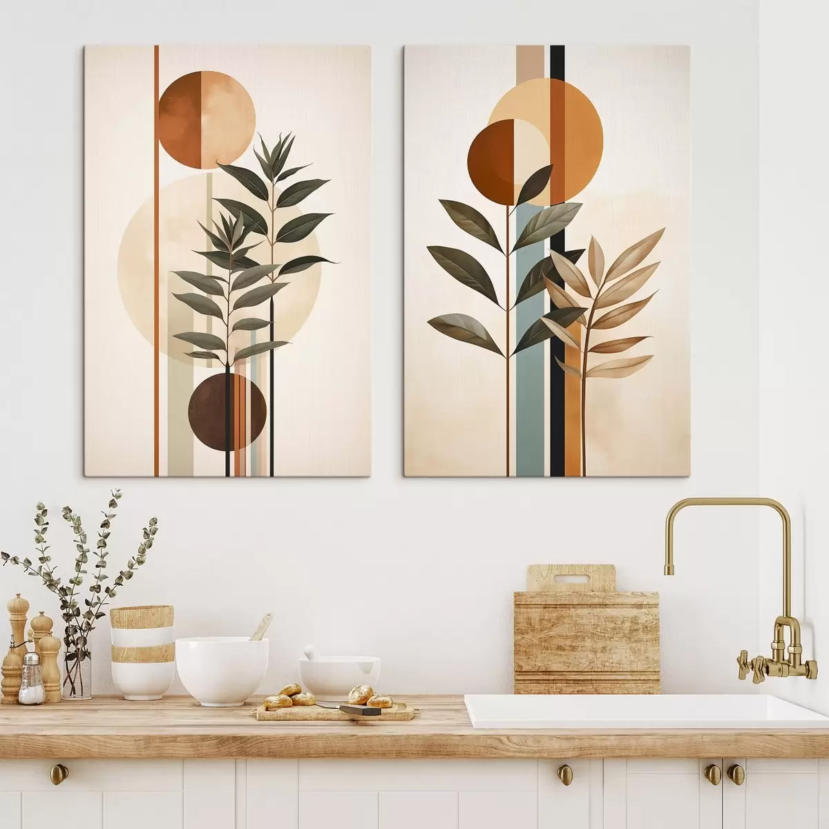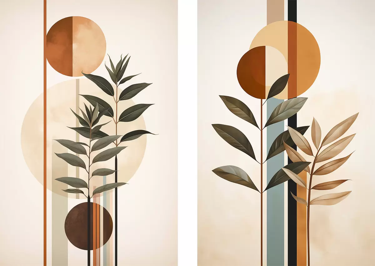 Quadri Piante astratte con cerchi e linee Nr m30392