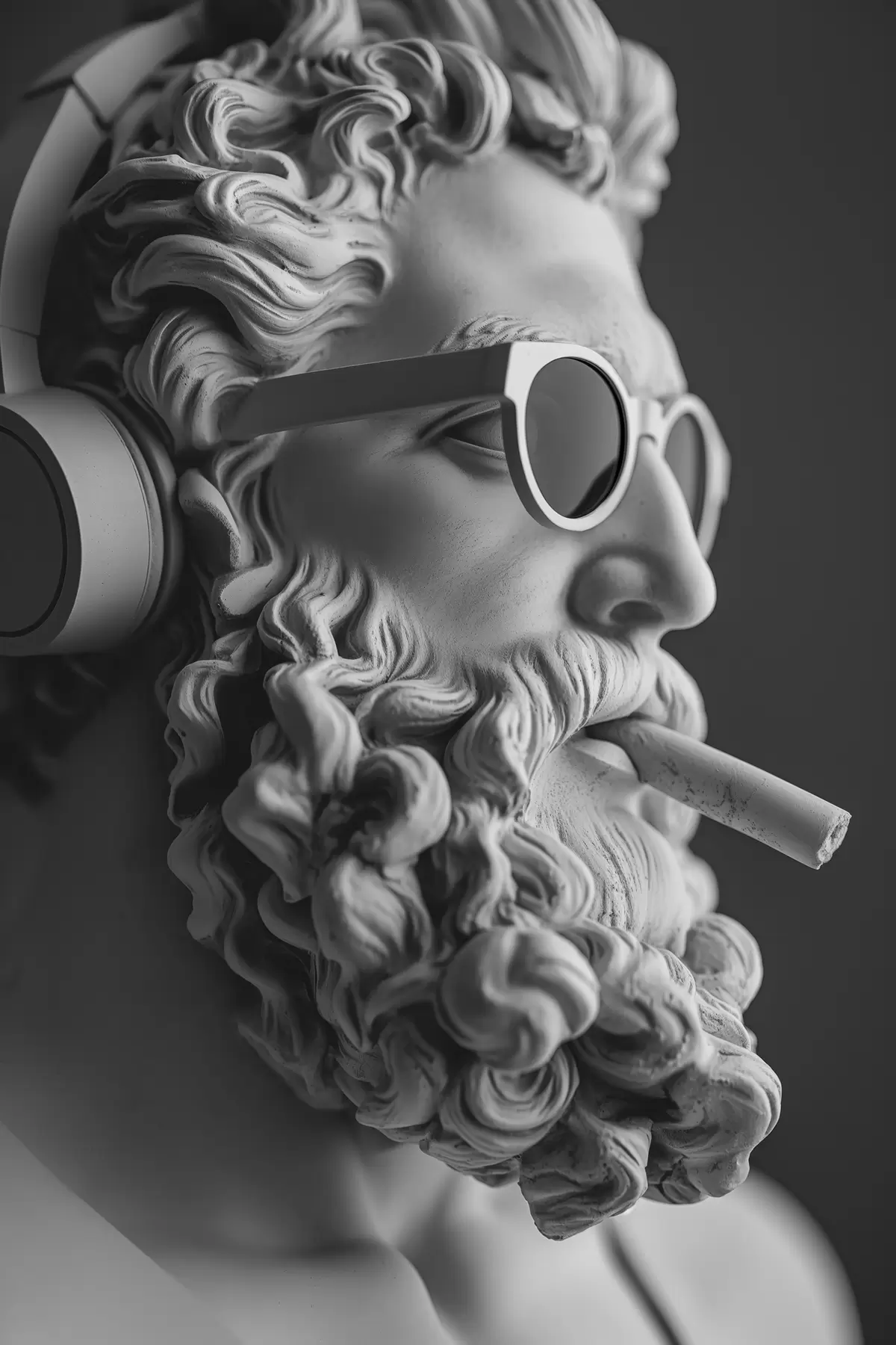 Quadri scultura greca antica in bianco e nero di zeus in stile moderno Nr s26122