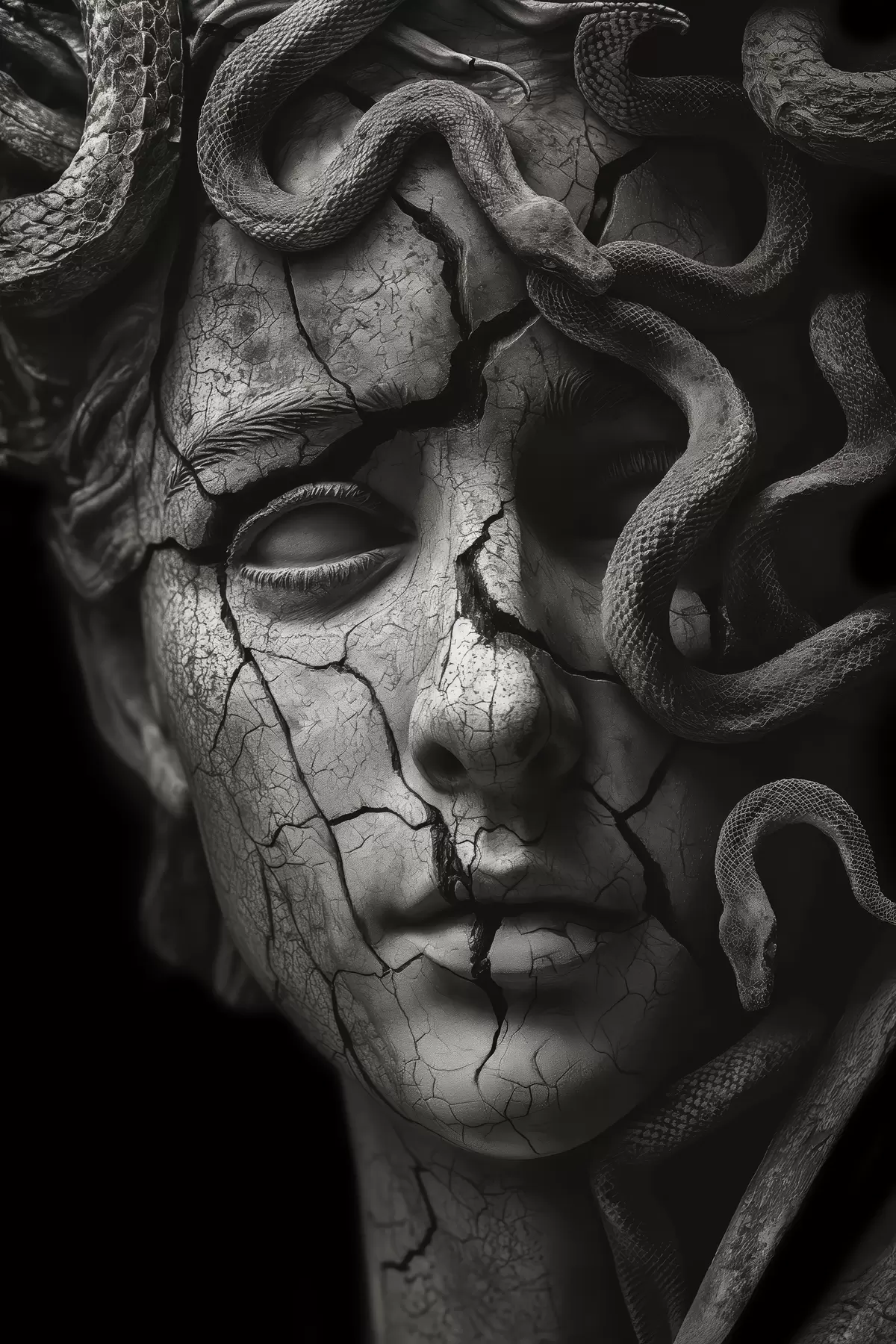 Quadri Scultura Gorgone Medusa in bianco e nero Nr s26128