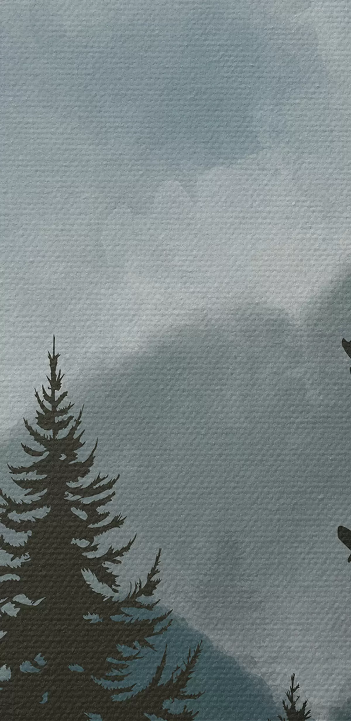 Quadri Montagne nebbiose e sagome di pini Nr s37017
