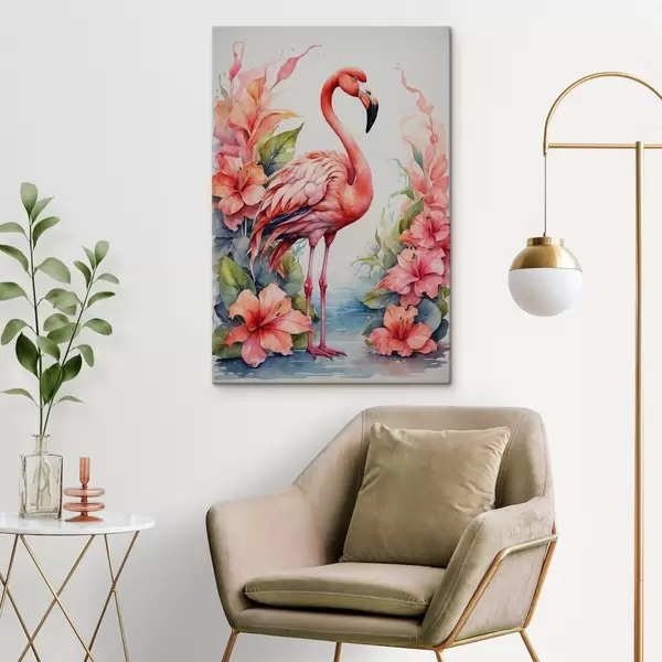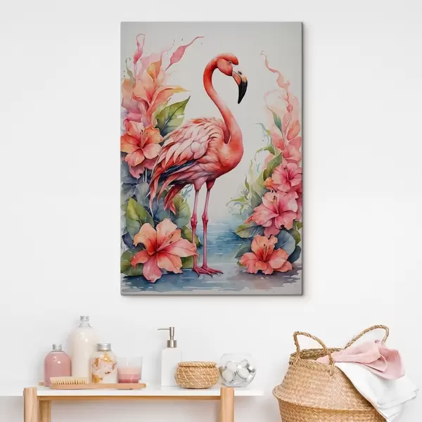 Quadri Elegante fenicottero tra fiori vivaci Nr s37125