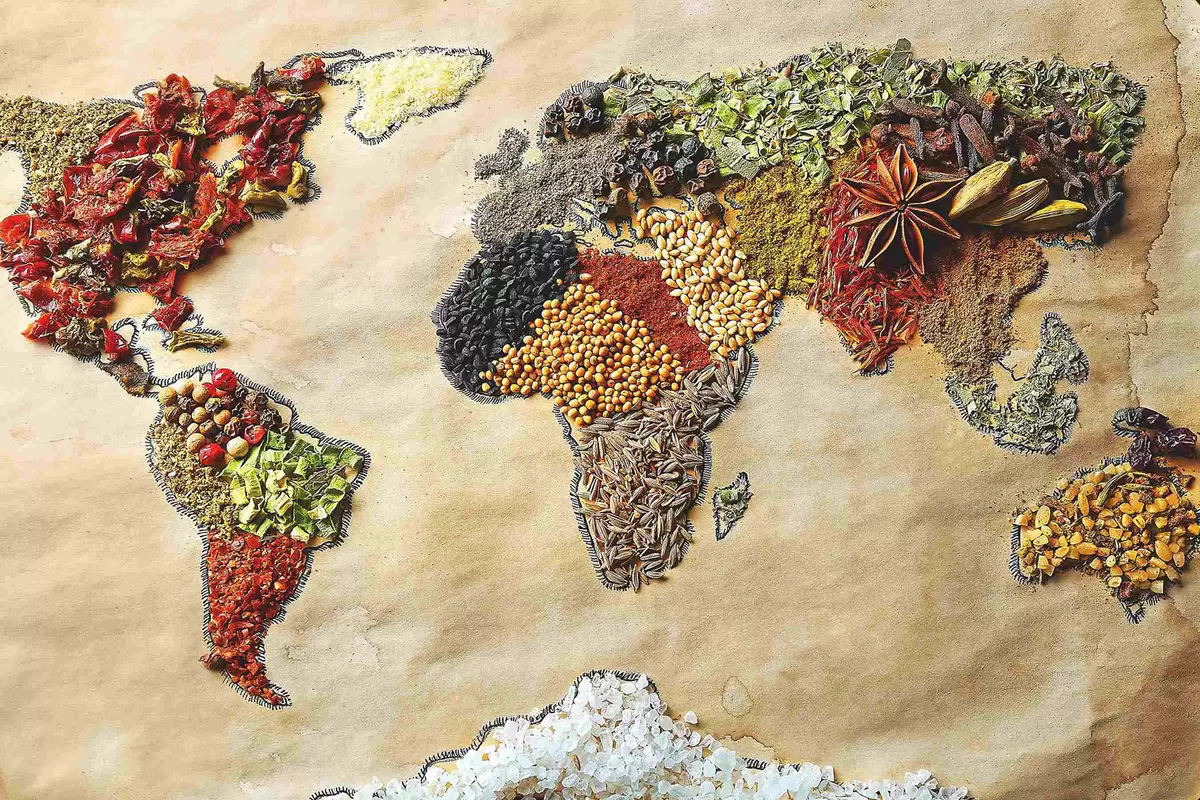 carta da parati Una mappa del mondo composta da diverse spezie nr. s37486
