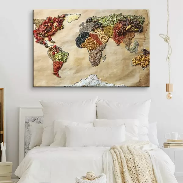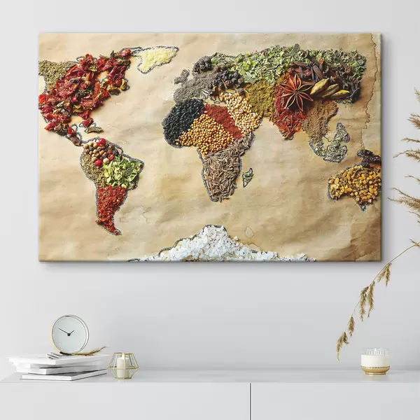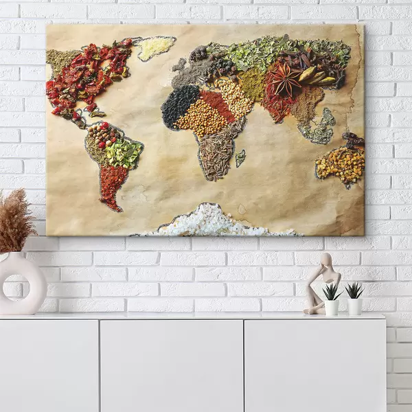 Quadri Una mappa del mondo composta da diverse spezie Nr s37486