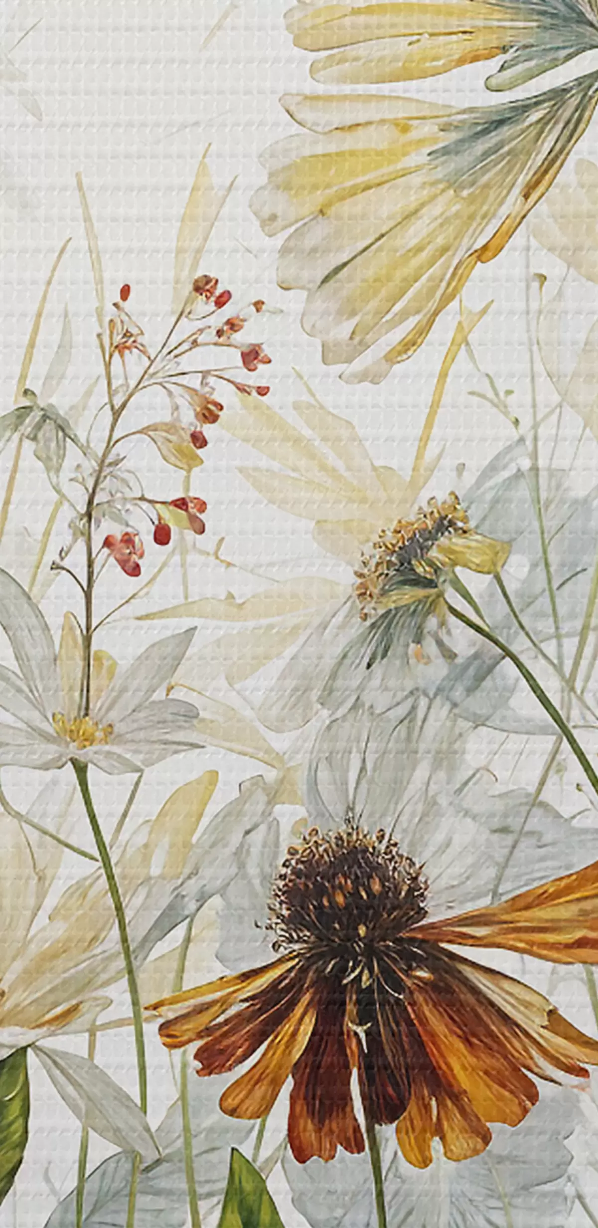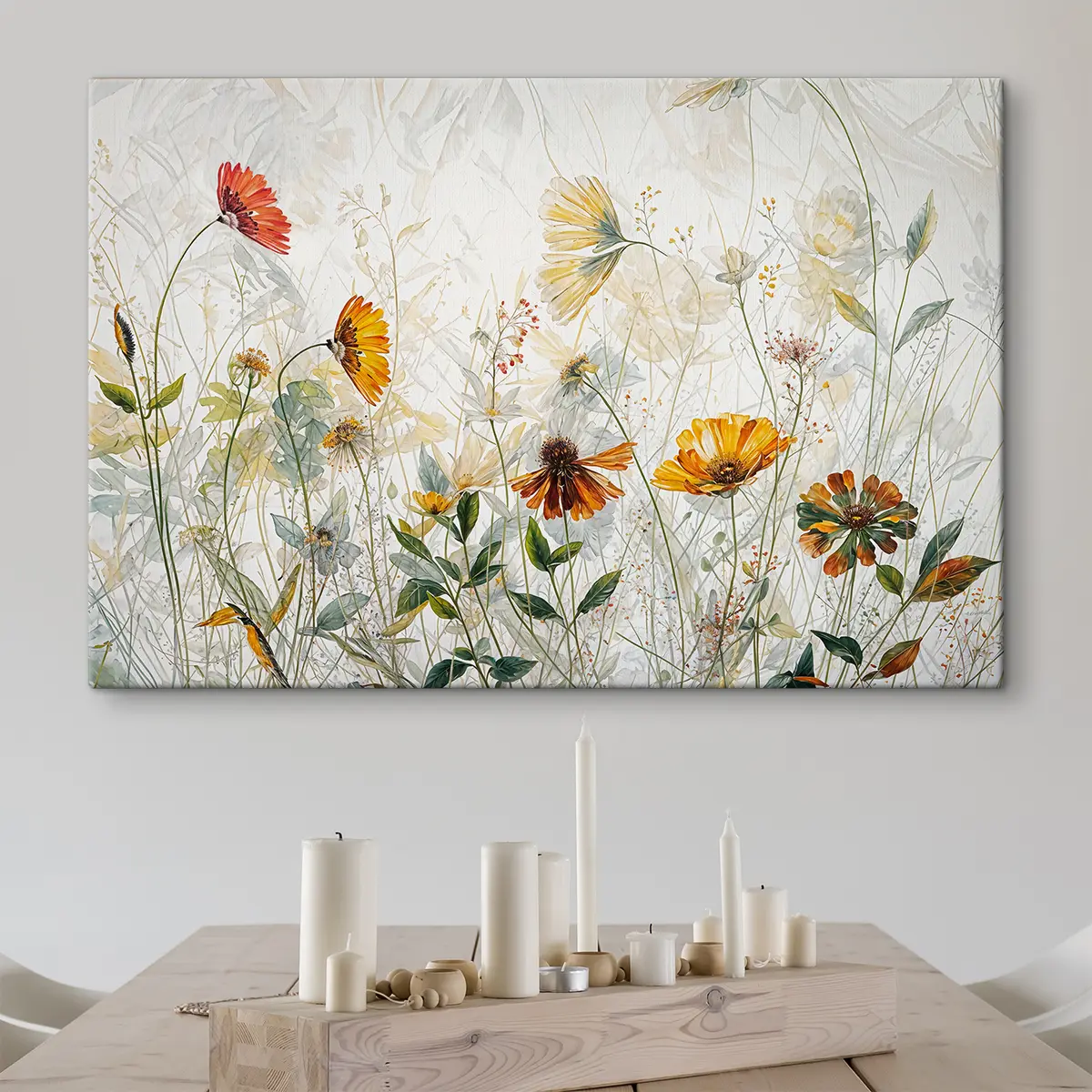 carta da parati Fiori delicati del campo sulla pittura a olio del fondo bianco nr. s38197