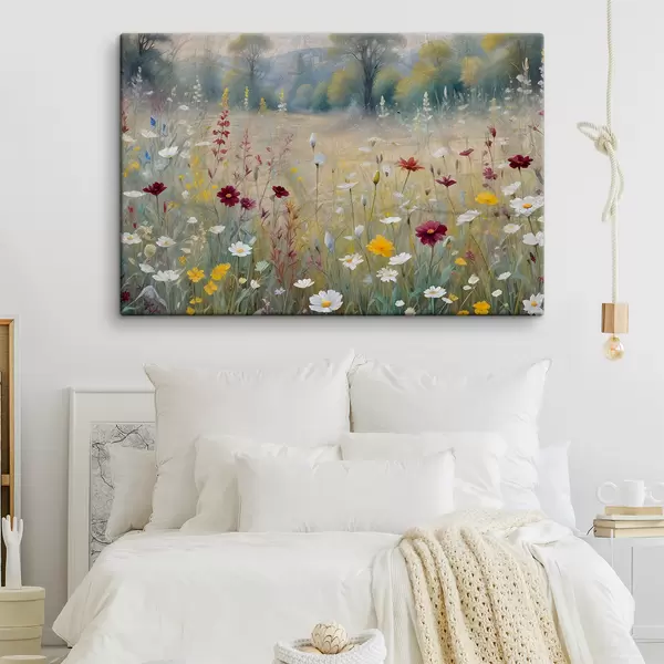 Quadri Un prato colorato con fiori di campo con una foresta sfocata sullo sfondo Nr s38368