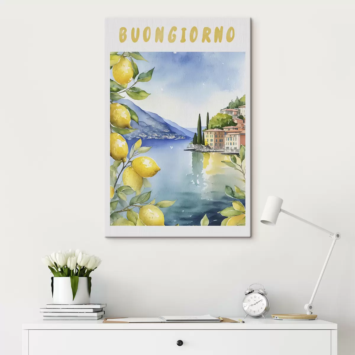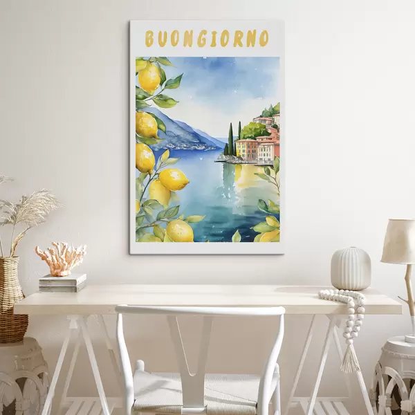 Quadri Lago italiano, estate, acquerello, paesaggio naturale, limoni, architettura cittadina Nr s38394