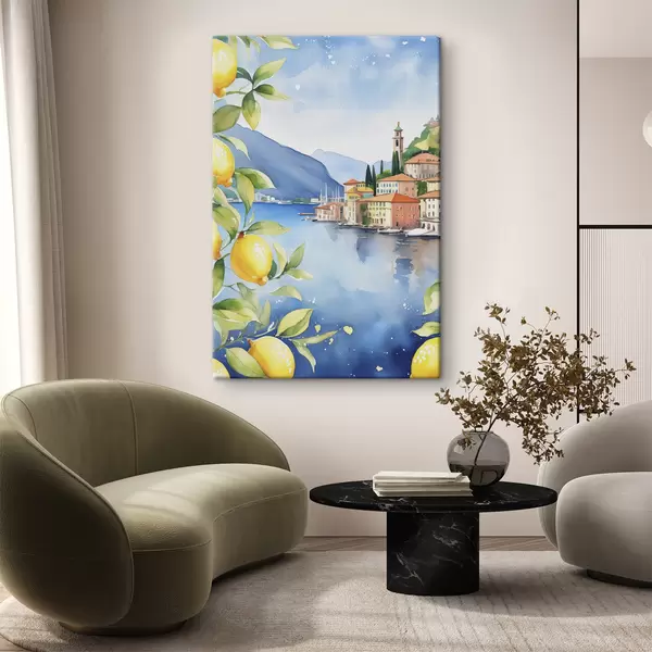 Quadri Lago italiano, estate, acquerello, paesaggio naturale, limoni, architettura cittadina Nr s38397