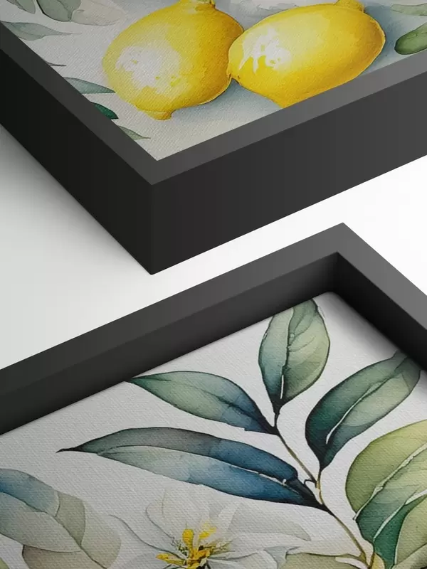 Quadri Limoni e fiori, acquerello, colazione, tazza di tè, stile bohémien Nr s38403