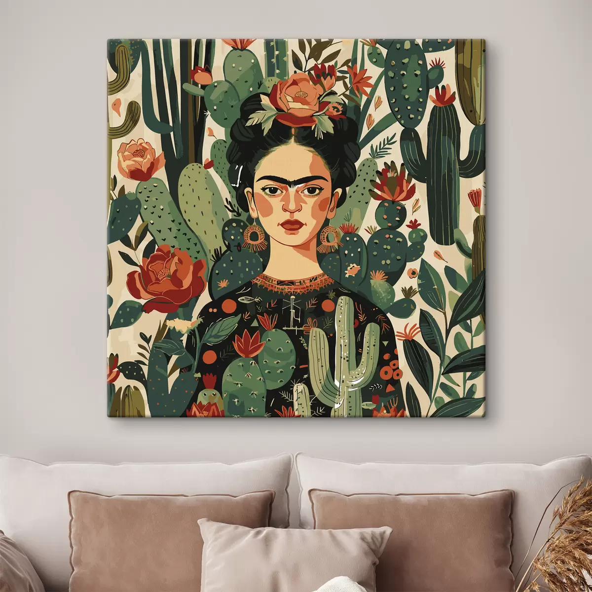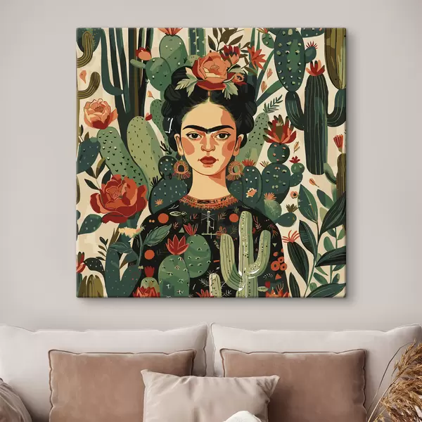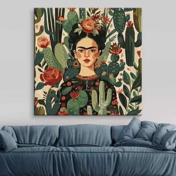 Quadri Frida in stile verde tra i cactus Nr s38415