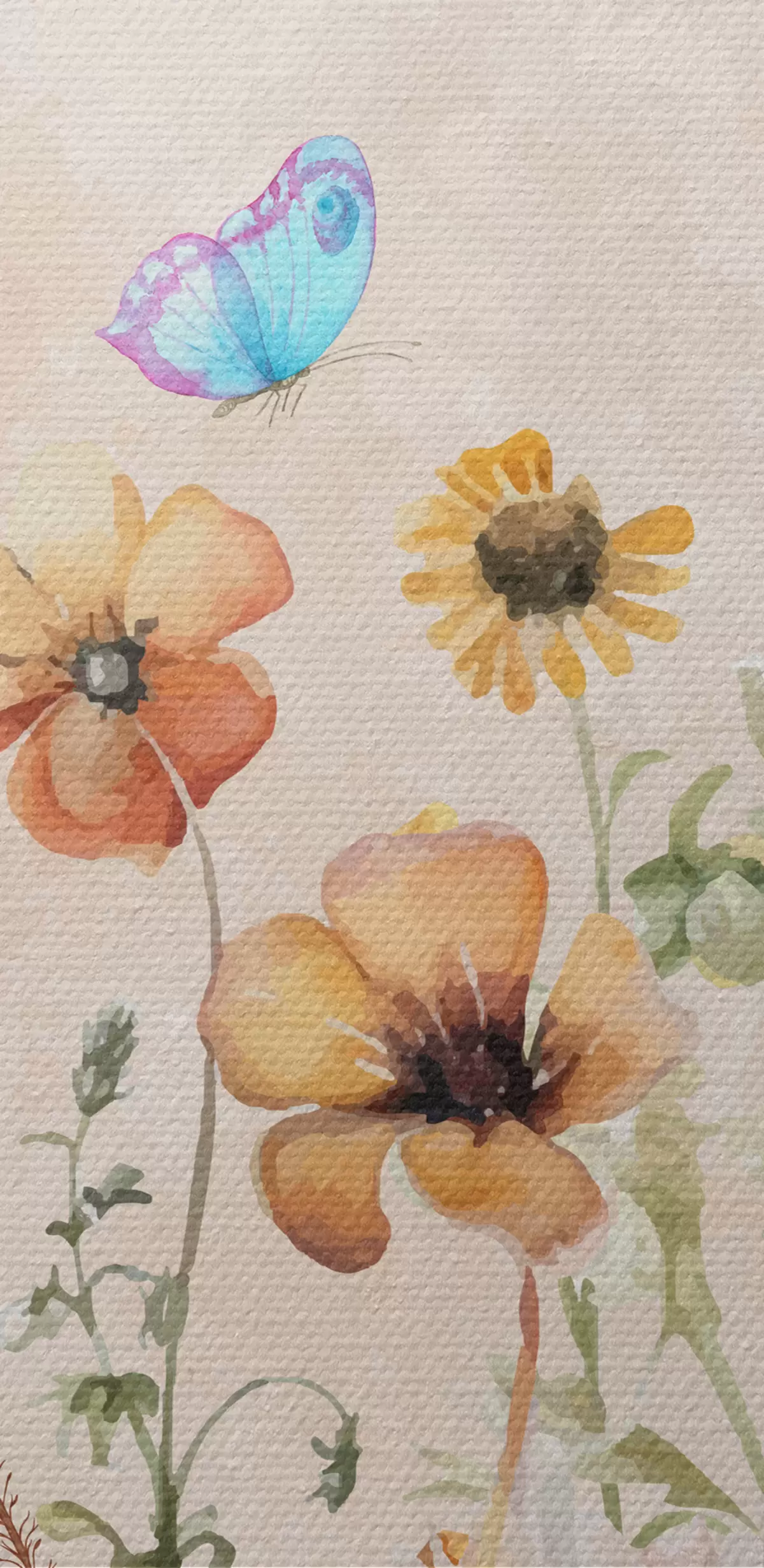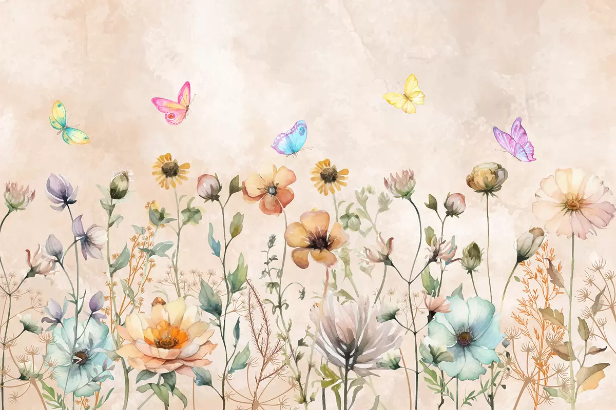 carta da parati fiori di campo con acquerelli, farfalle luminose, pastelli nr. s38441