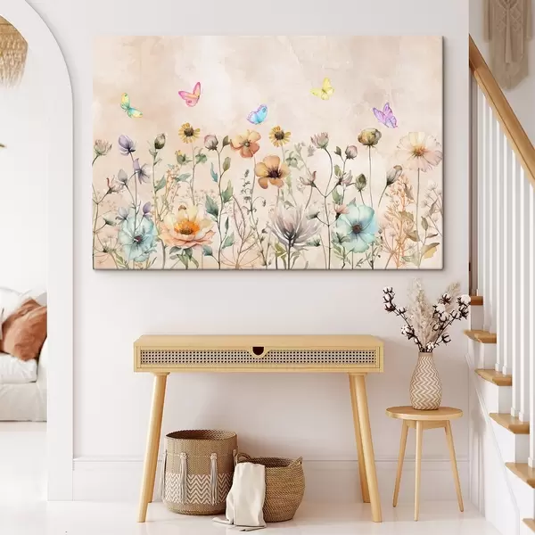 Quadri fiori di campo con acquerelli, farfalle luminose, pastelli Nr s38441