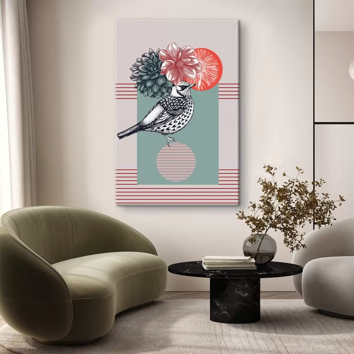 Quadri Un uccello con fiori sulla testa Nr s38442