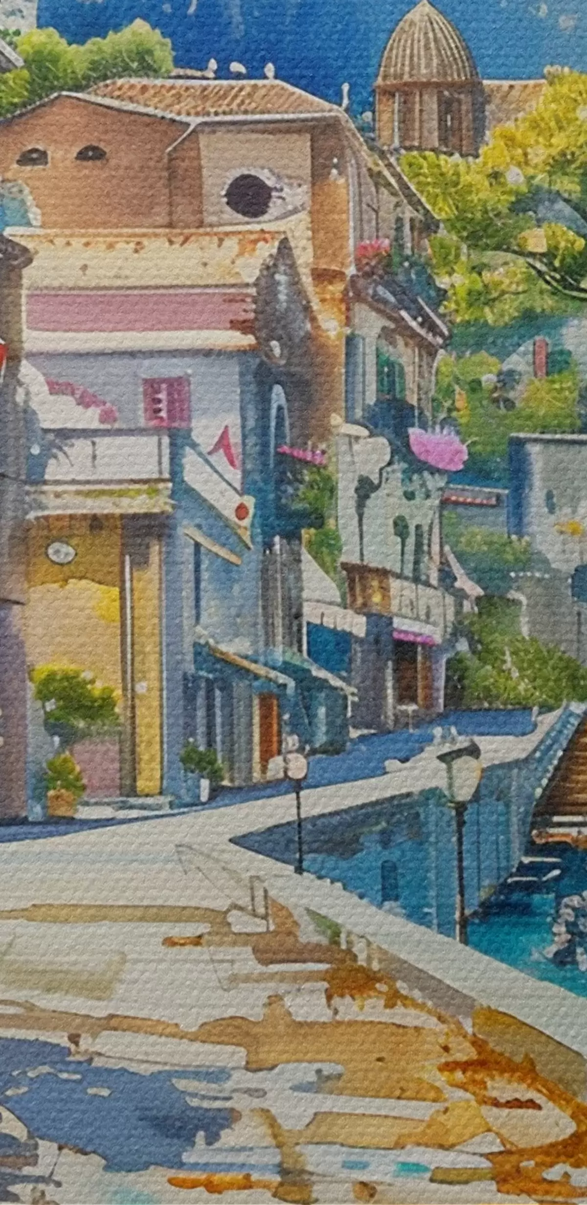 La verniciatura crea un ulteriore strato protettivo sulla tela. Il quadro sarà più resistente ai piccoli danni e per rinfrescarlo si può passare un panno morbido e leggermente umido.