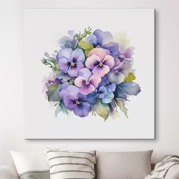 Quadri Illustrazione dell'acquerello delle viole, bouquet, fiori, colore blu, viola, verde Nr s38486
