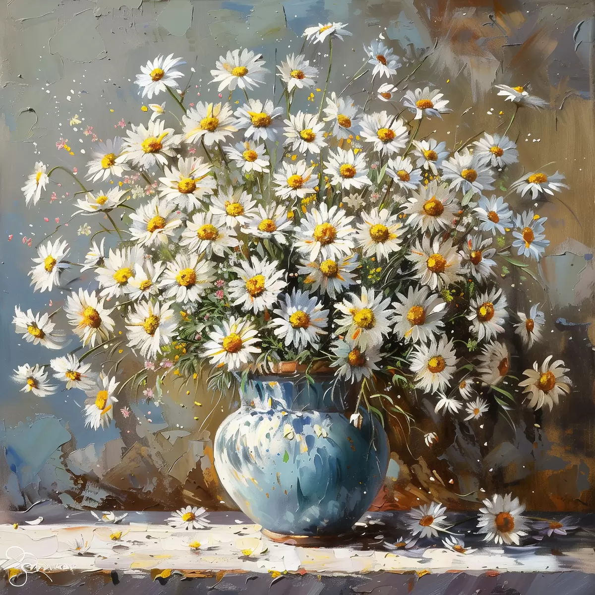 Quadri Vaso con margherite sul tavolo Nr s38707