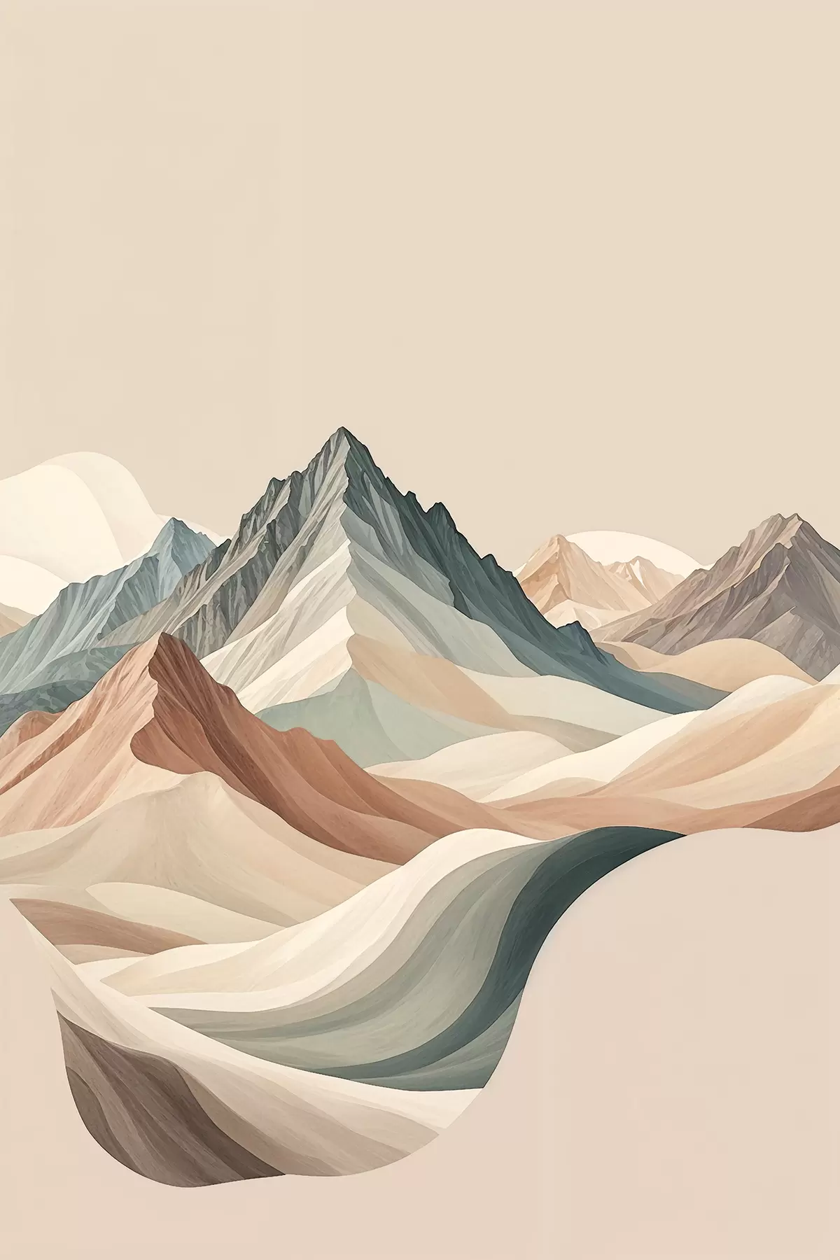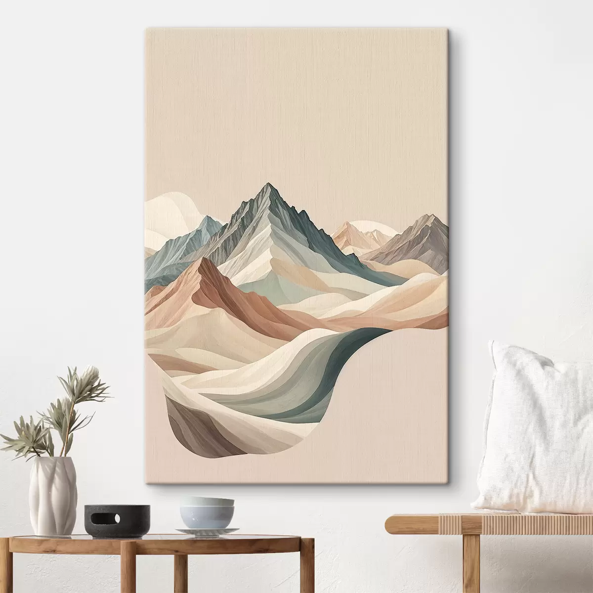 Quadri Paesaggio montano minimalista con cime rocciose e dolci colline in beige Nr s38770