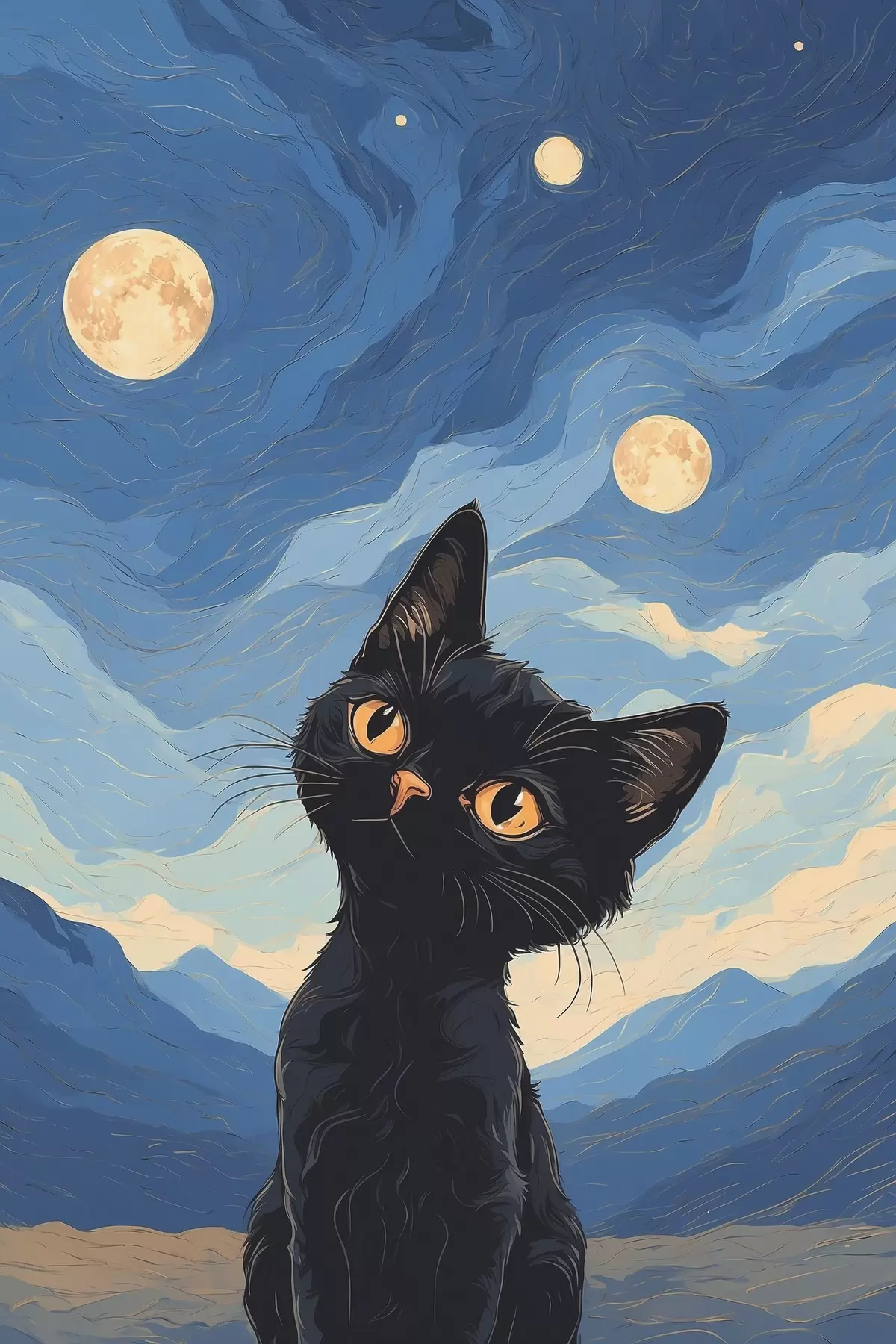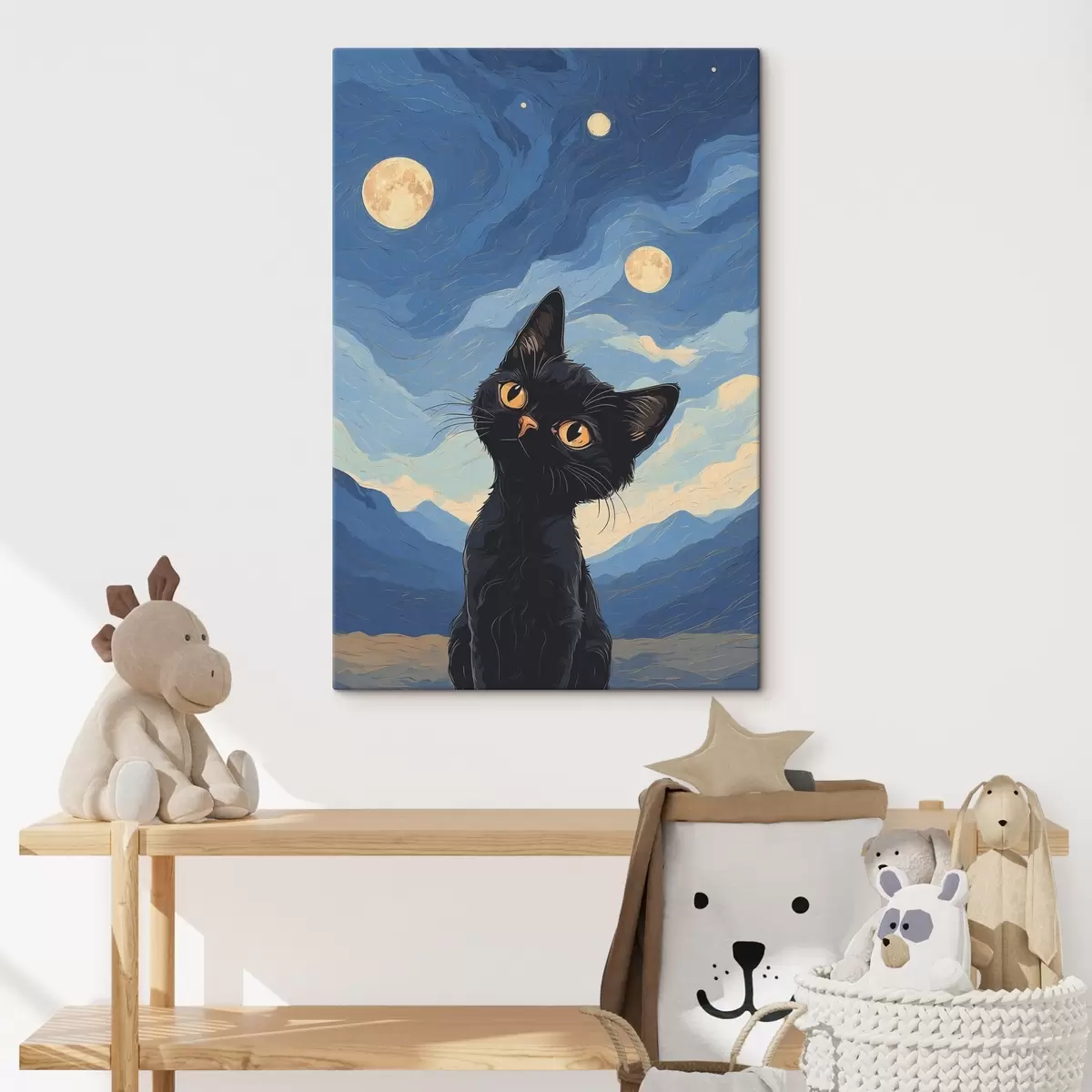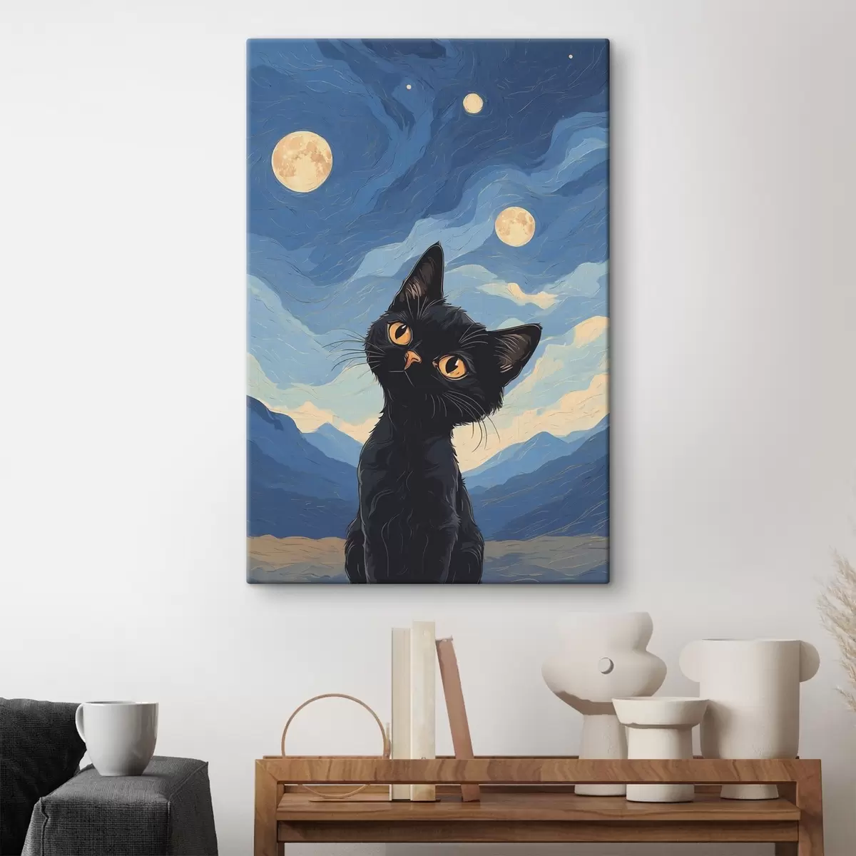 Quadri Gatto curioso sotto un cielo stellato Nr s38860