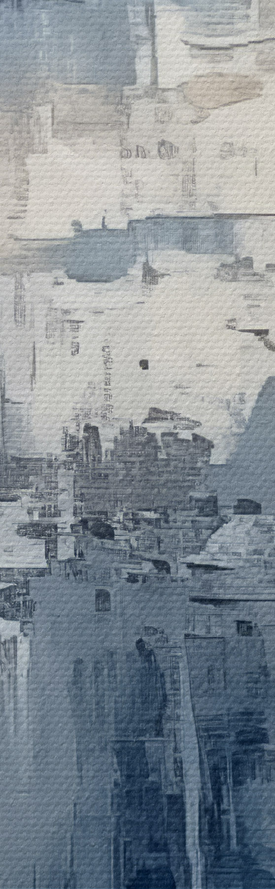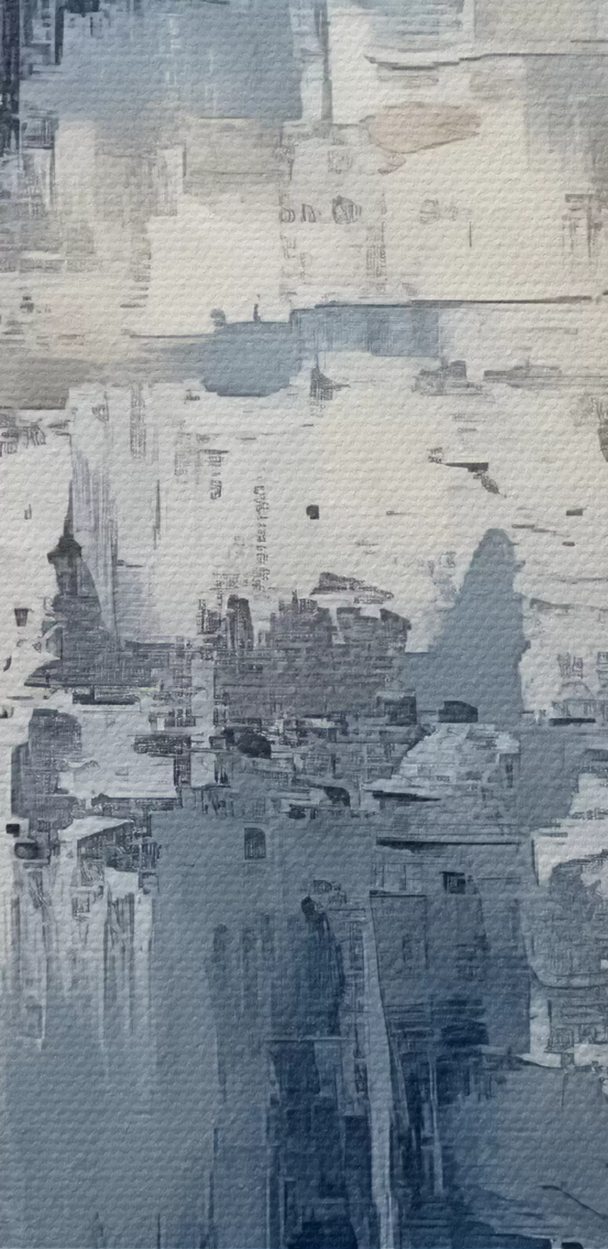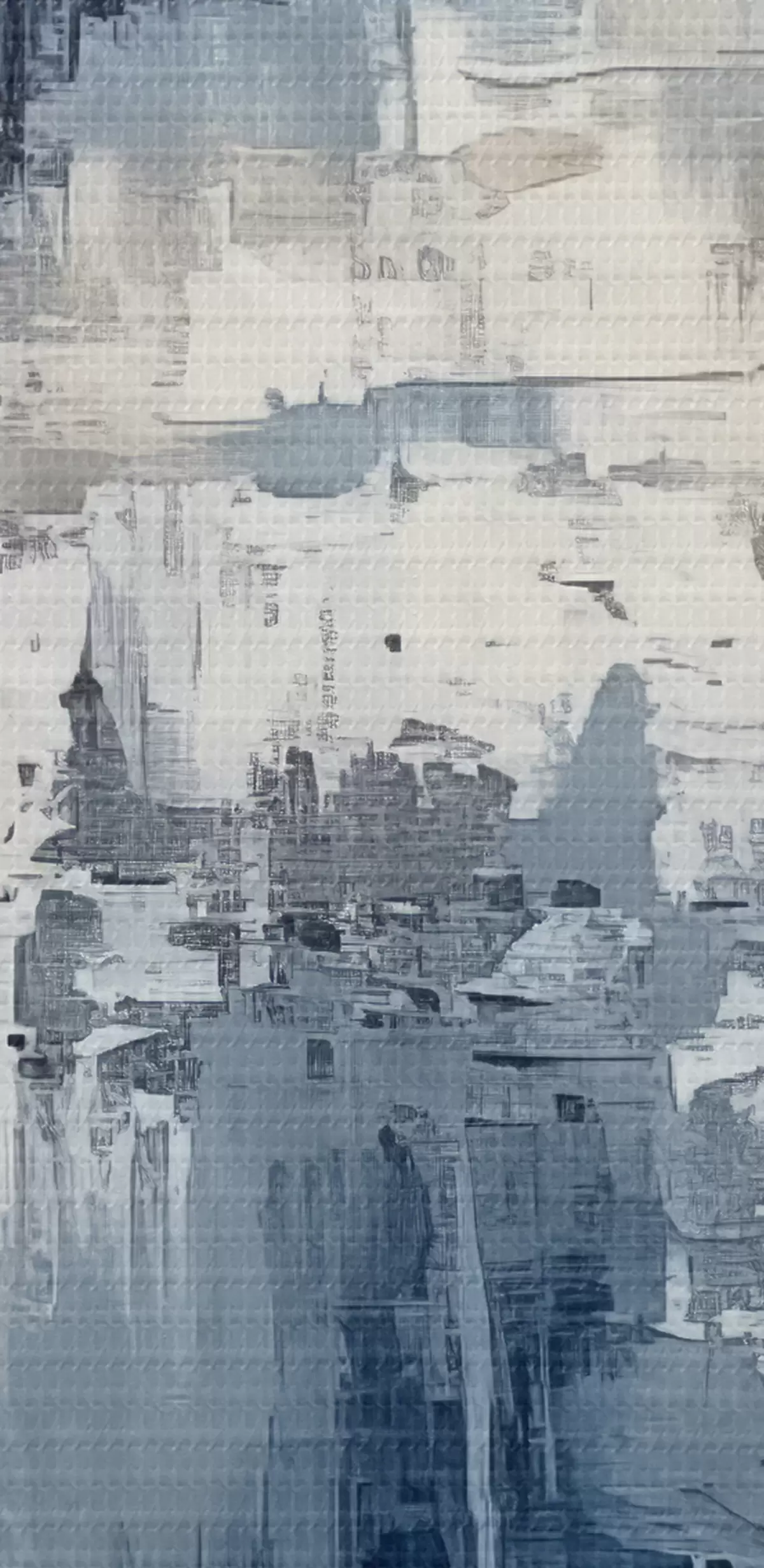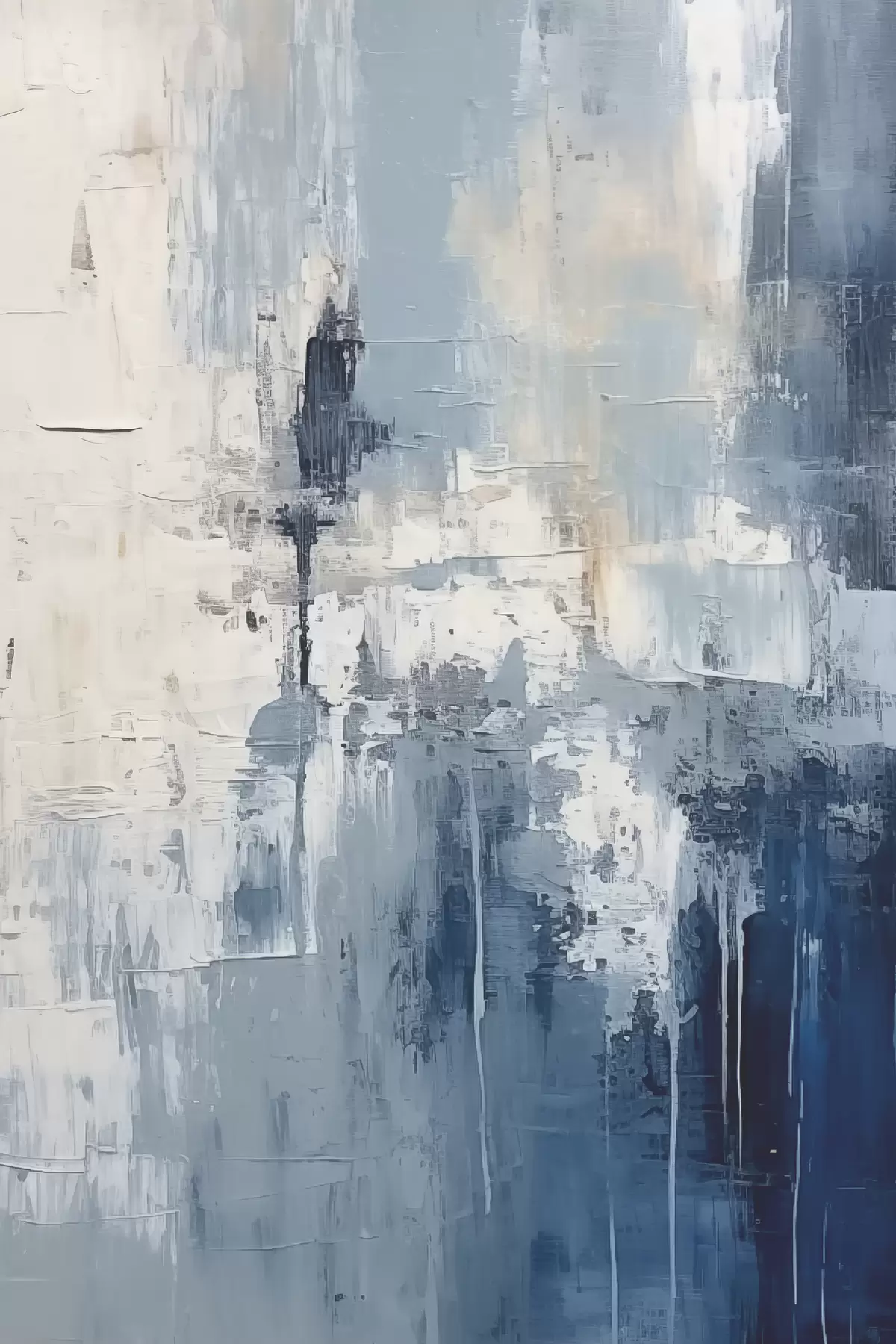 Quadri Pittura a olio minimalista astratta, strofinata, geometrica, macchia, colore blu e bianco Nr s38906
