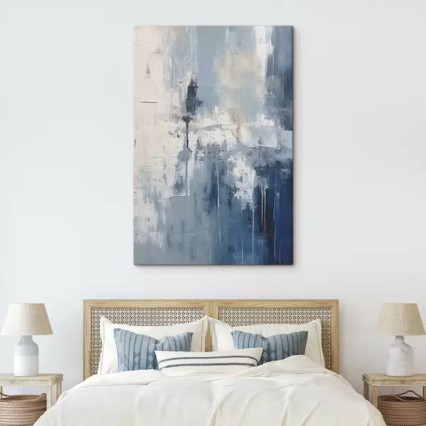 Quadri Pittura a olio minimalista astratta, strofinata, geometrica, macchia, colore blu e bianco Nr s38906