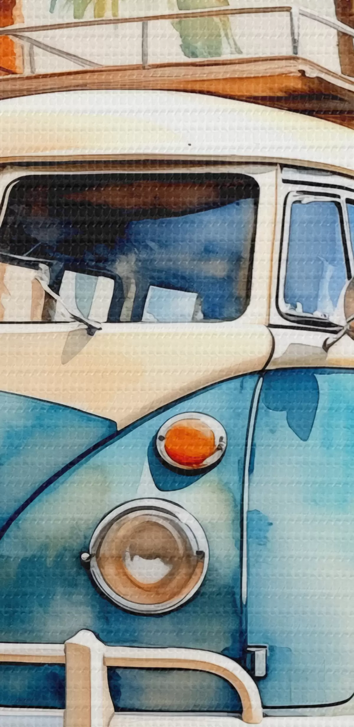carta da parati Un'auto da viaggio è parcheggiata sulla spiaggia su uno sfondo di palme acquerellate nr. s38911