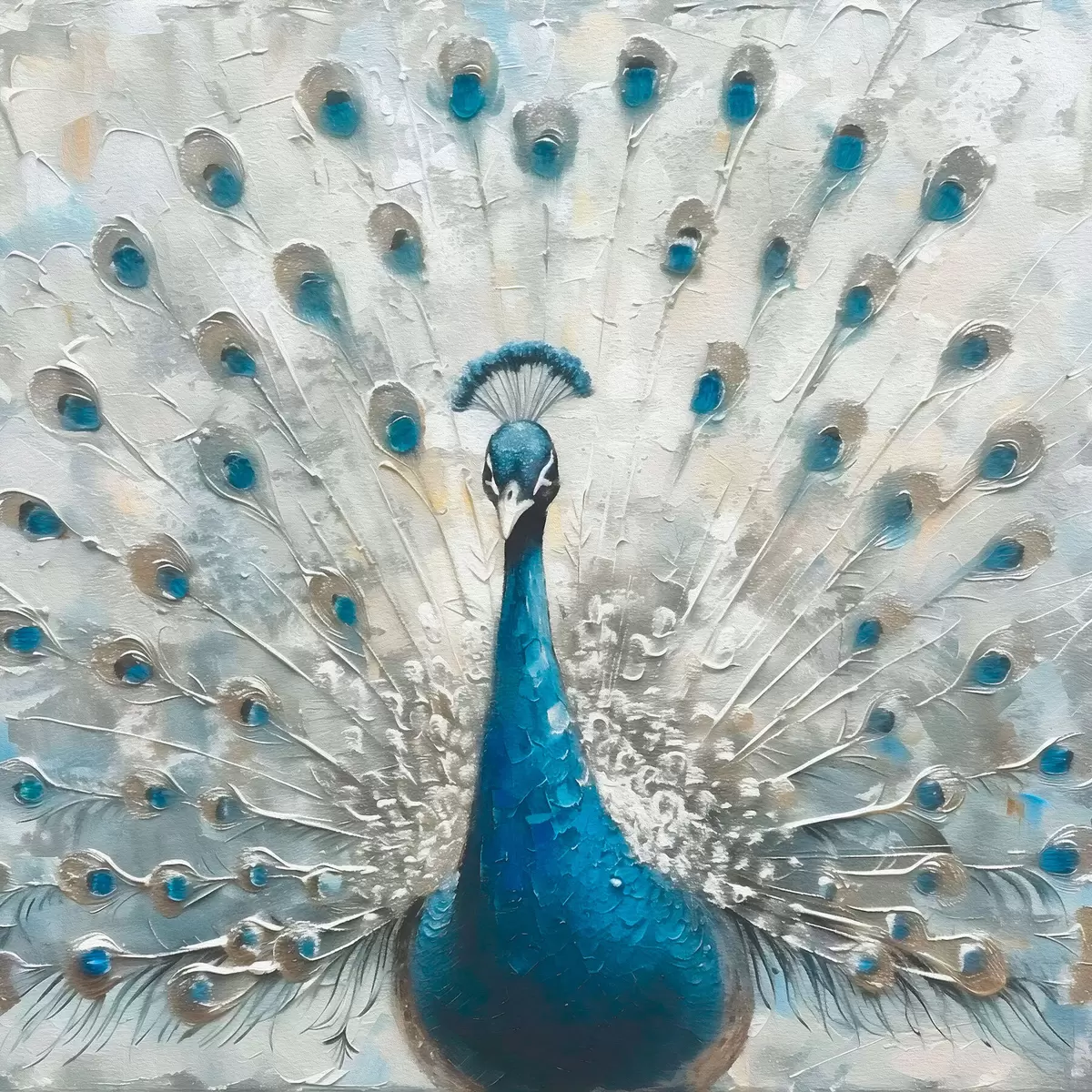Quadri Uccello pavone blu con texture stampata piume Nr s38931