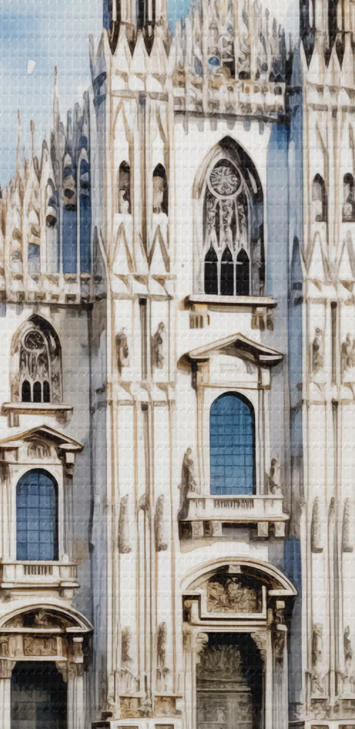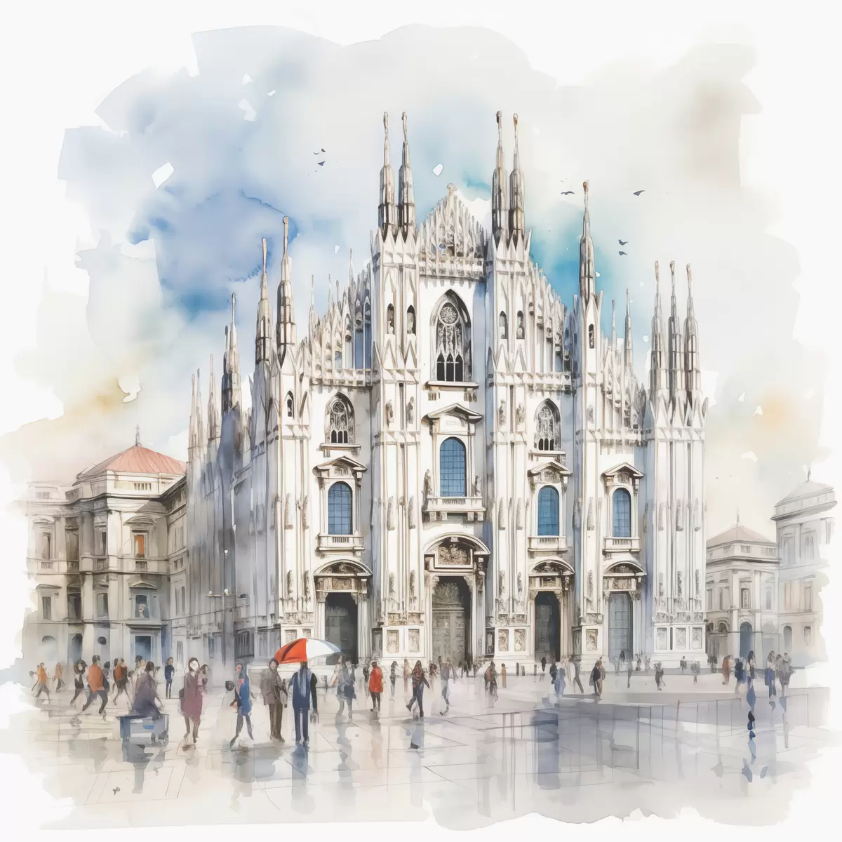 carta da parati Duomo di Milano, architettura, città, pioggia, acquerello, blu, grigio, gente che cammina nr. s38938