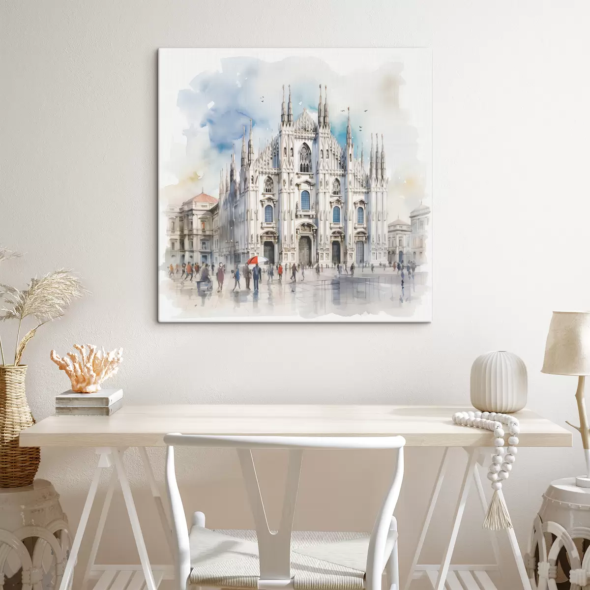 Quadri Duomo di Milano, architettura, città, pioggia, acquerello, blu, grigio, gente che cammina Nr s38938