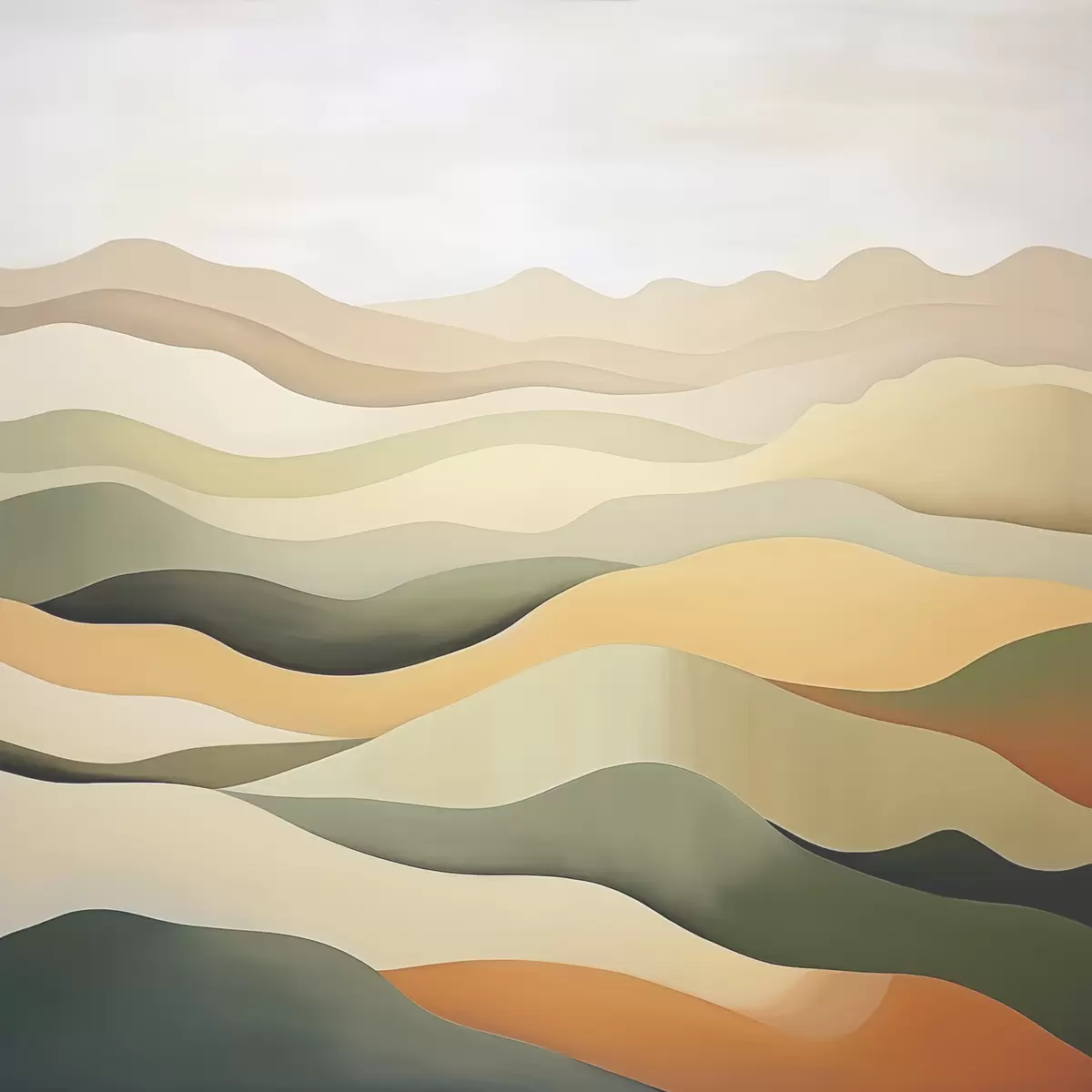 carta da parati Colline, paesaggio astratto, guazzo, verde, ocra, seppia, grigio nr. s38952