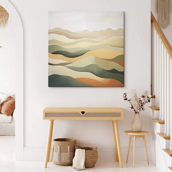 Quadri Colline, paesaggio astratto, guazzo, verde, ocra, seppia, grigio Nr s38952