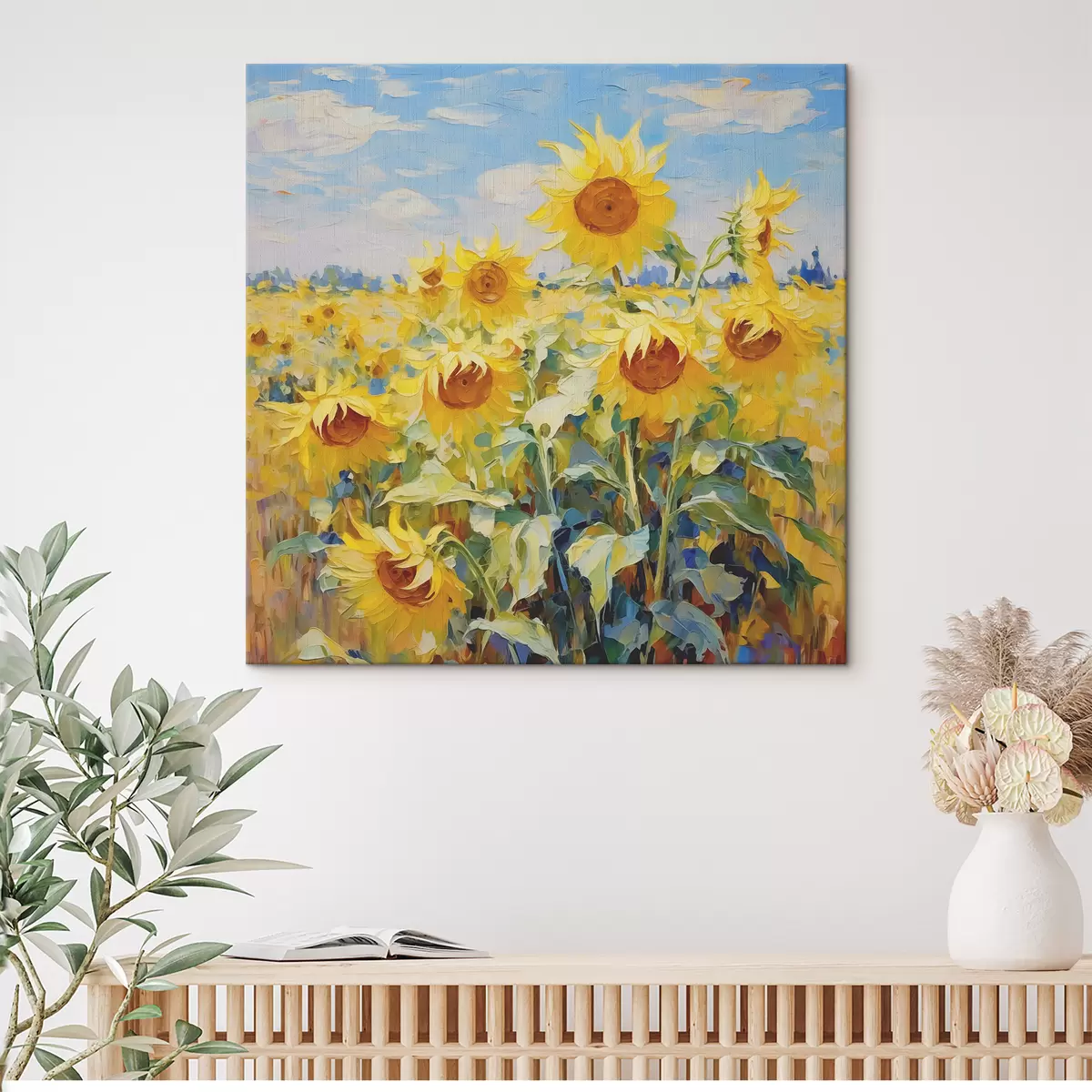 Quadri Campo di pittura a olio di girasoli, colore giallo e blu Nr s38953