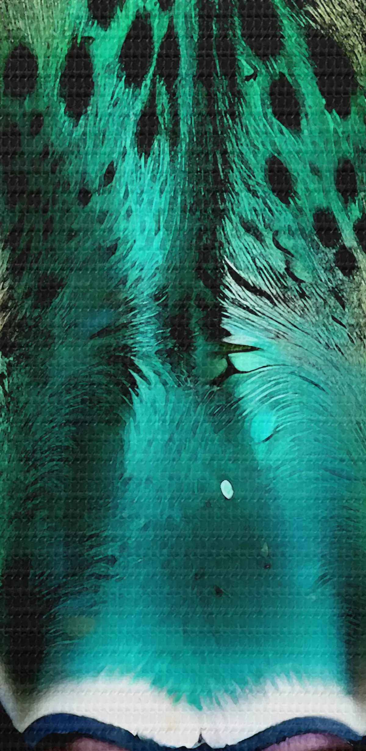 carta da parati Un ritratto ravvicinato di un feroce leopardo dagli occhi verdi con una vibrante pelliccia turchese e maculata nera nr. s38979
