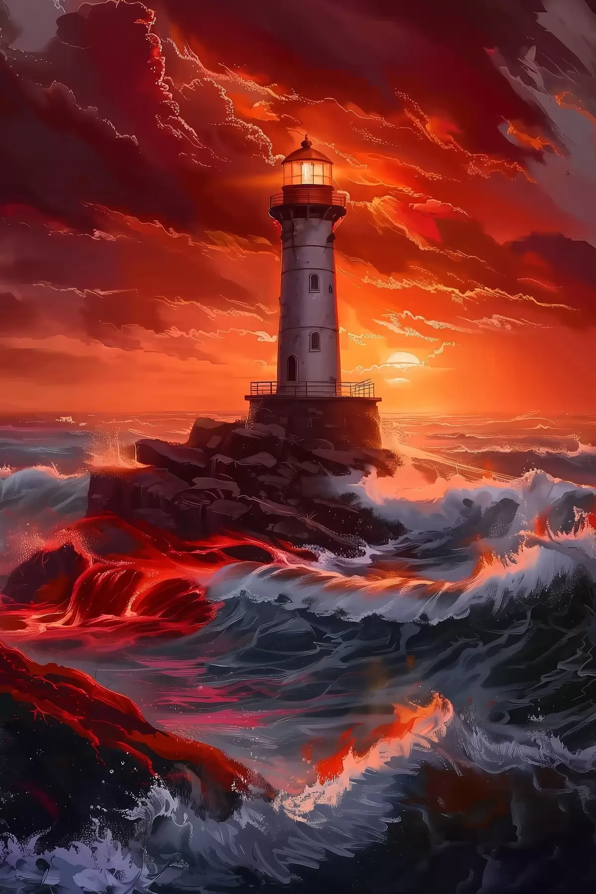 Quadri Faro che guida attraverso i mari in tempesta Nr s39050