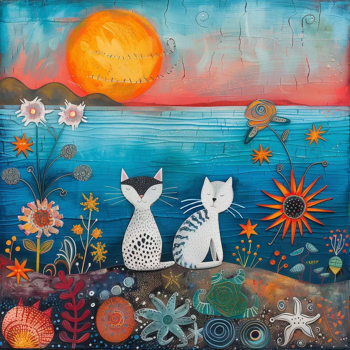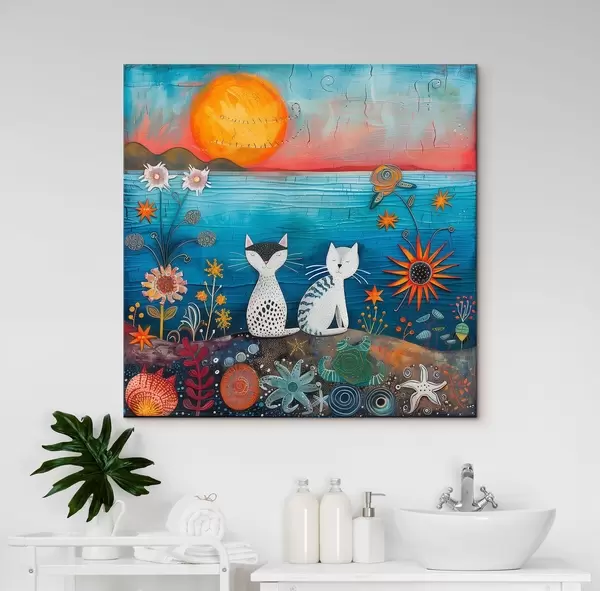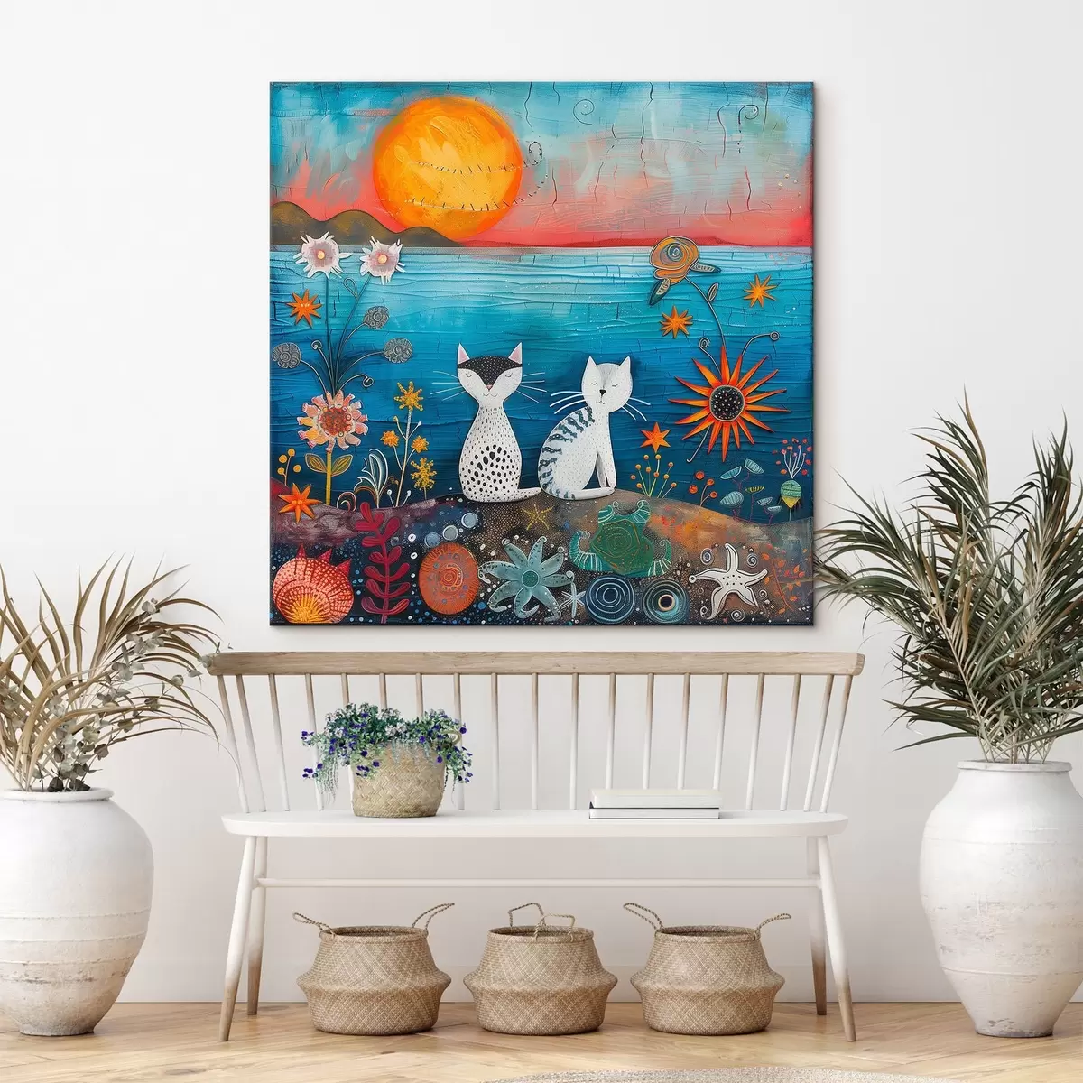 Quadri Gatti al tramonto, fiori colorati Nr s39085