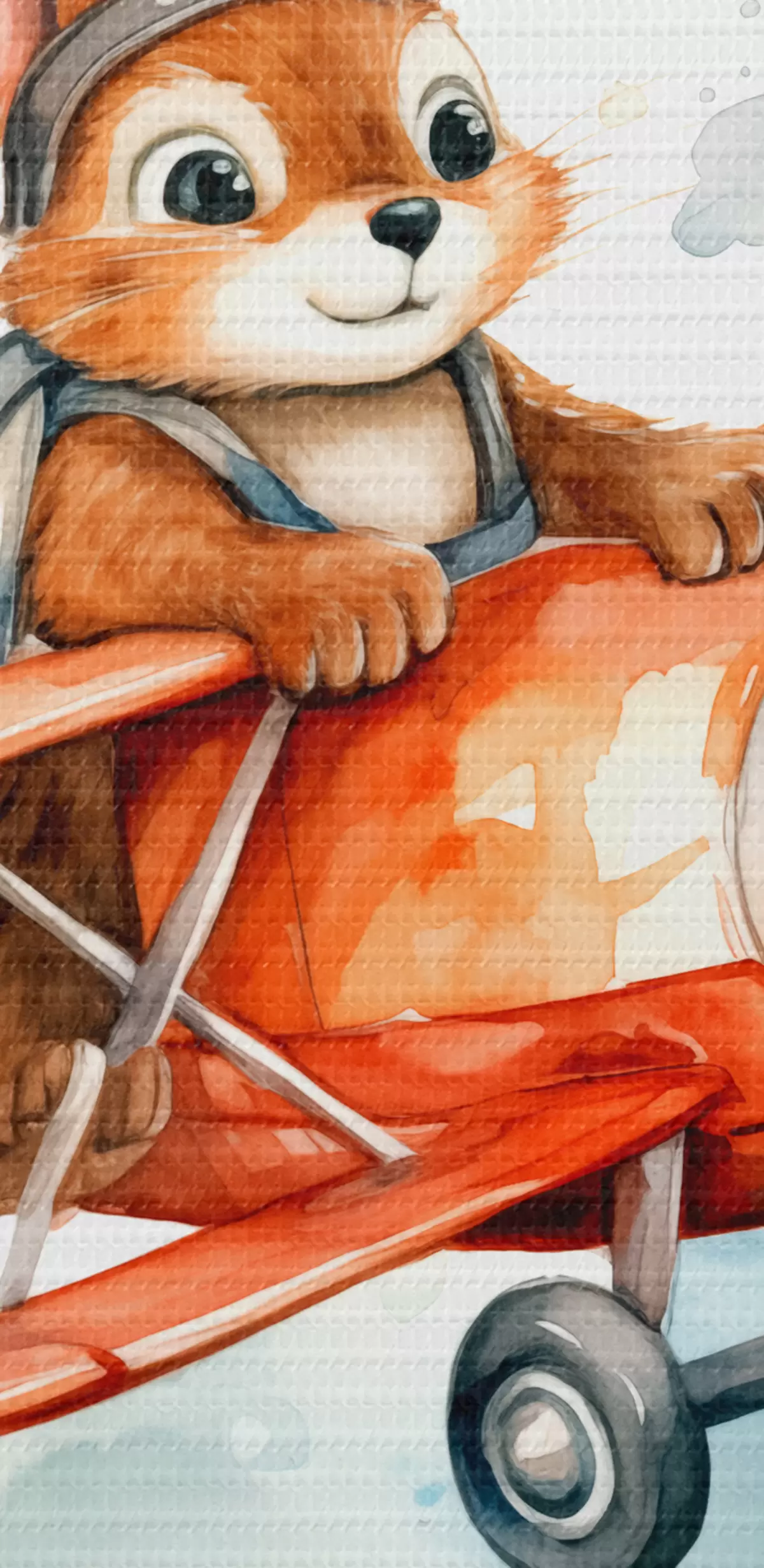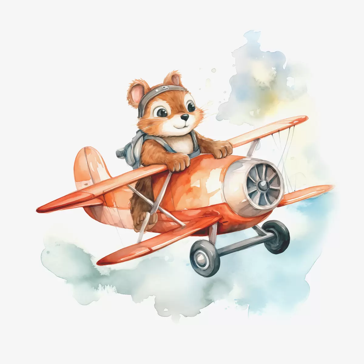 carta da parati Lo scoiattolo del bambino vola in un acquerello dell'illustrazione dei bambini dell'aereo rosso nr. s39116