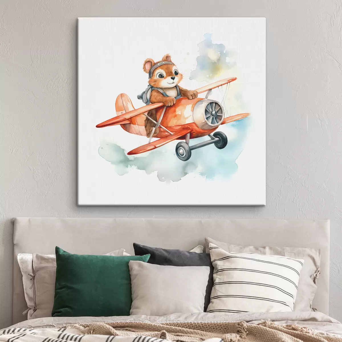 Quadri Lo scoiattolo del bambino vola in un acquerello dell'illustrazione dei bambini dell'aereo rosso Nr s39116