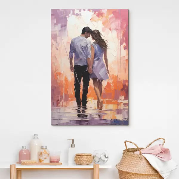 Quadri Silhouette di una coppia innamorata pittura astratta, ragazza e ragazzo, colore rosa, arancione, viola, nero Nr s39124