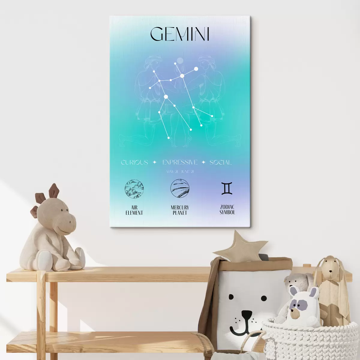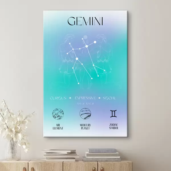 Quadri Segno zodiacale Gemelli, costellazioni, cosmico, pianeti, astrologia, colori blu e viola Nr s39279