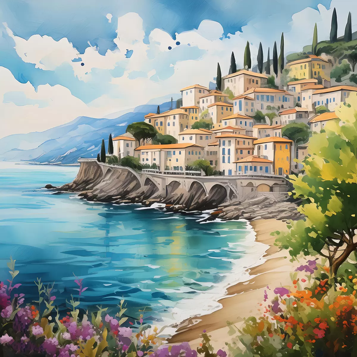 Quadri pittoresco mare in una città italiana Nr s39298