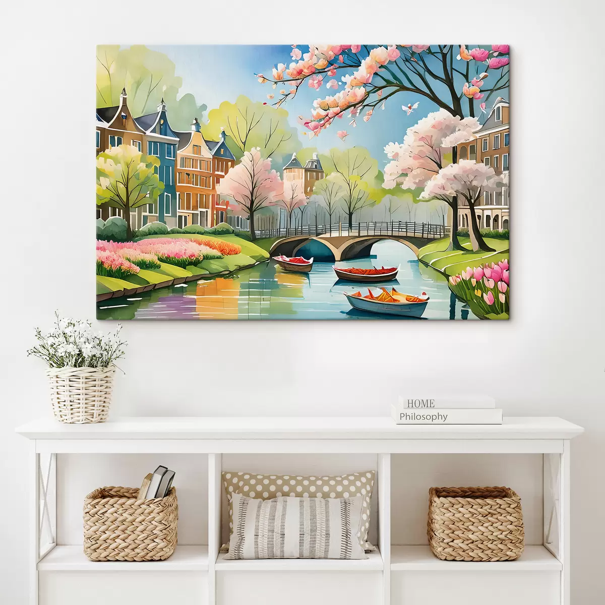carta da parati alberi in fiore ad Amsterdam in primavera nr. s39301