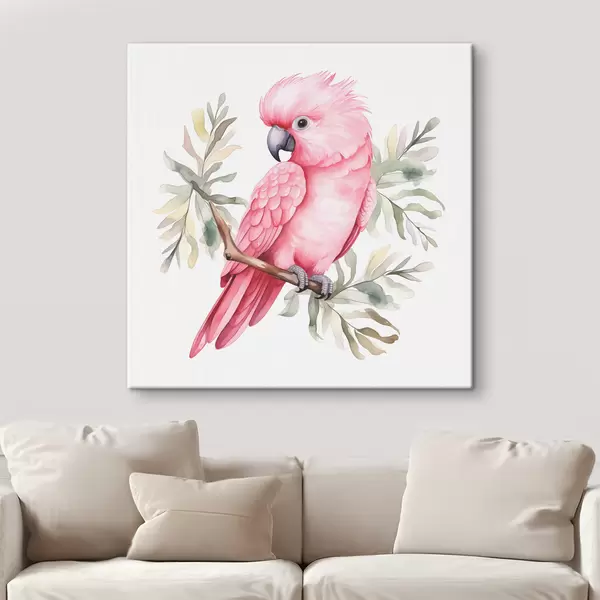 Quadri Pappagallo rosa del cacatua che si siede su un acquerello del ramo Nr s39334