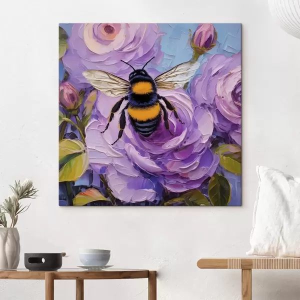 Quadri Ape sulle peonie rosa, fiori estivi colorati, pittura a olio, pennellate vivaci Nr s39411