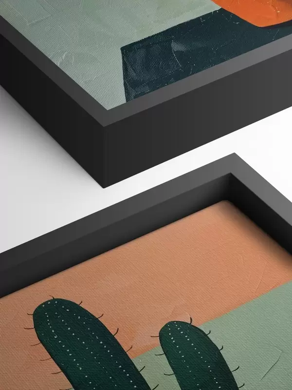 Quadri Un dipinto minimalista di un singolo cactus con fiori in una tavolozza di colori vivaci. Nr s39452