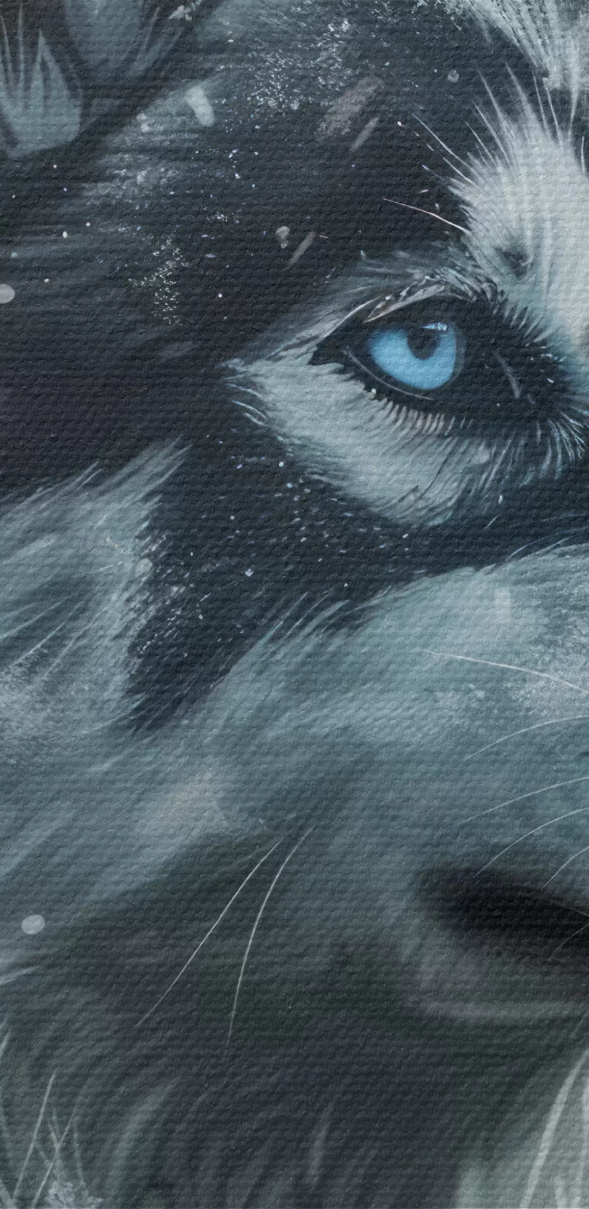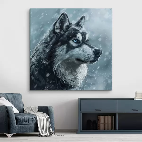 Quadri Husky con gli occhi azzurri su sfondo blu invernale Nr s39462